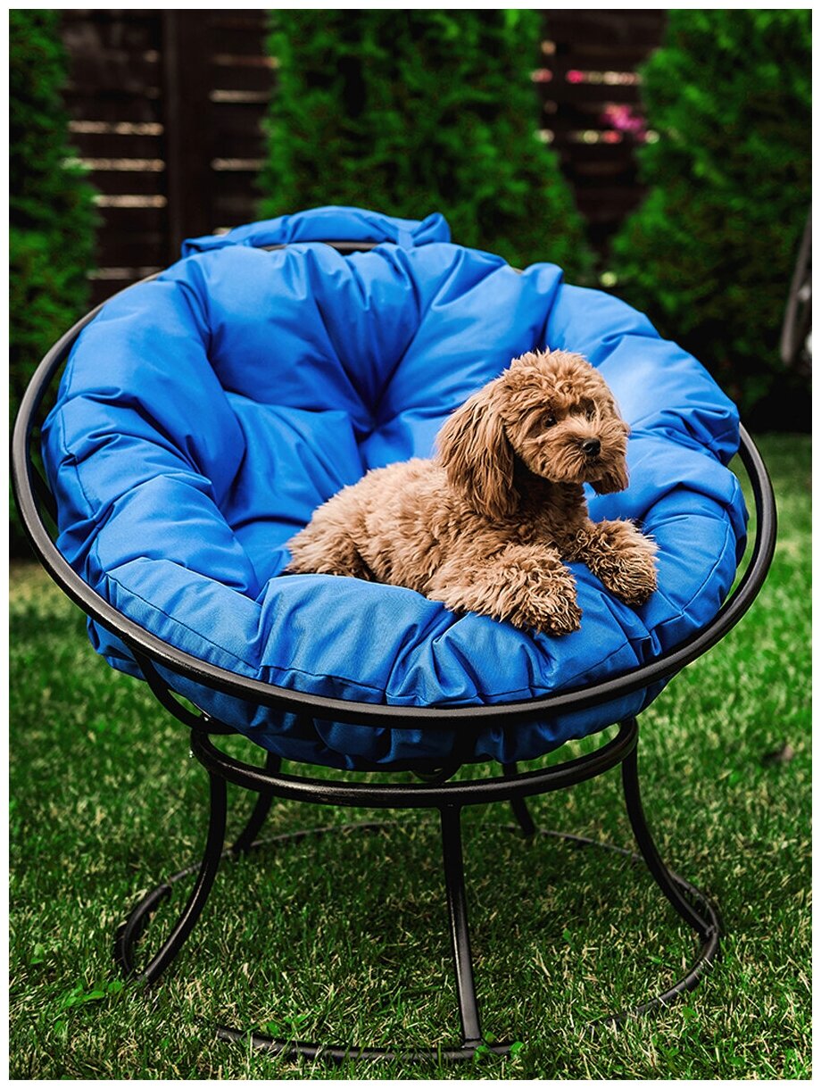 Садовое кресло M-group Папасан мини коричневое + синяя подушка
