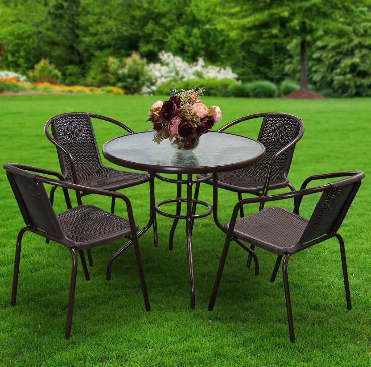 Купить Садовый стул 52х60х72см коричневый, искусственный ротанг 4 шт
