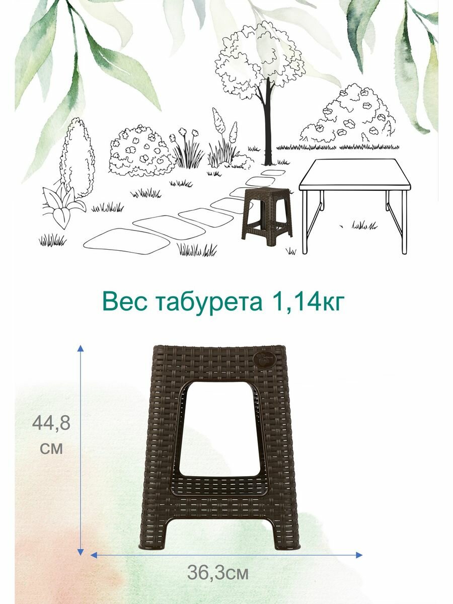 Табурет квадратный InGreen Rattan, 36,3 x 36,3 x 44,8 см, горький шоколад интересное: