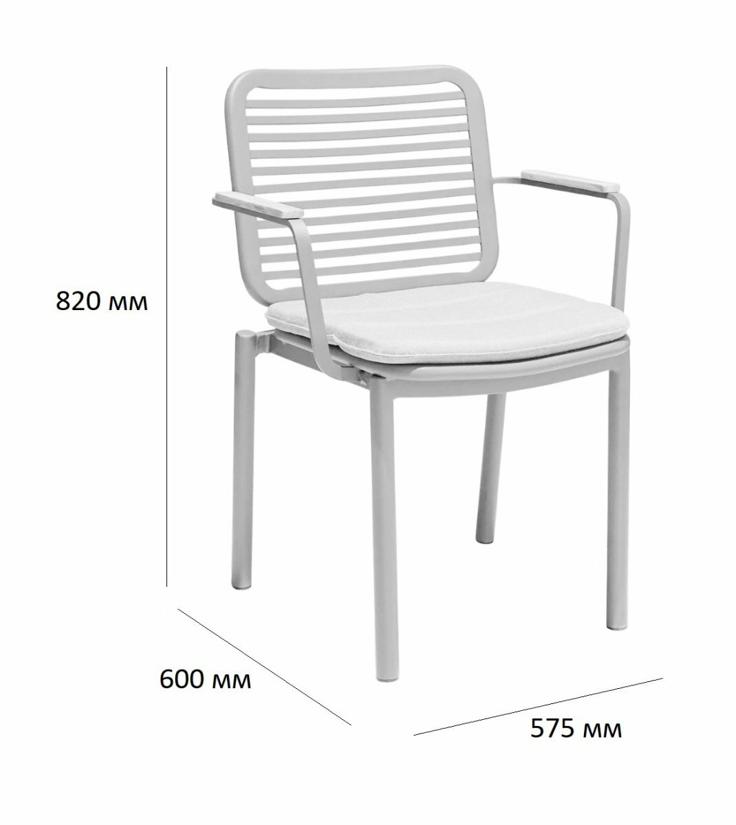 Стул металлический садовый с подлокотниками и подушкой Tagliamento Armona, цвет зеленый, светло-серый
