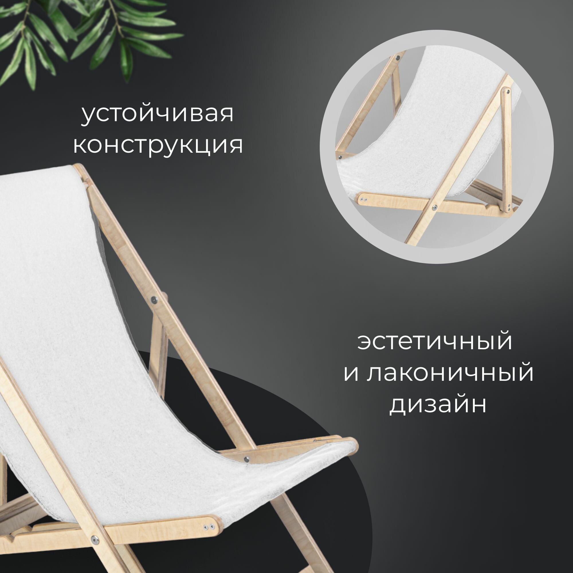 Купить Кресло-шезлонг "Березка" без шлифовки с белой тканью складной для дома и для дачи