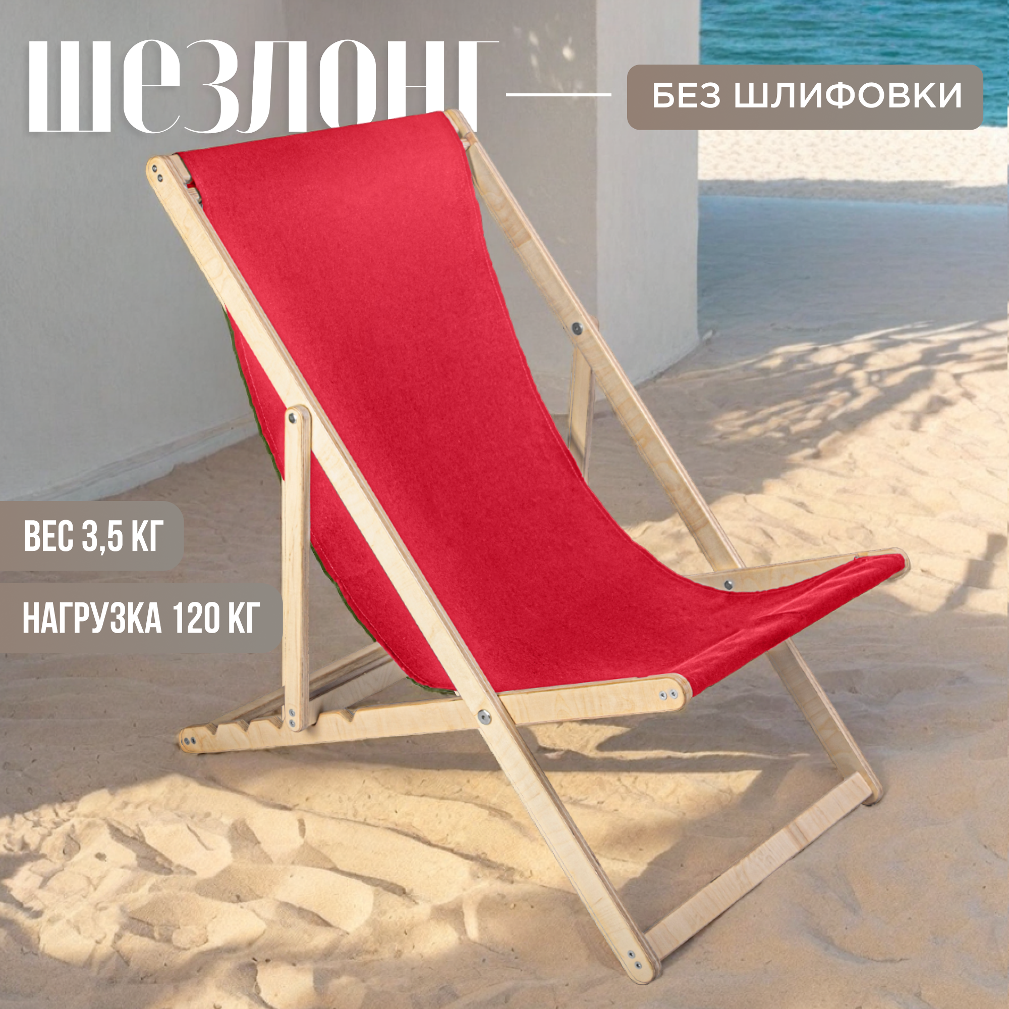 Садовый шезлонг без шлифовки с красной тканью складной для дома и для дачи интересное: