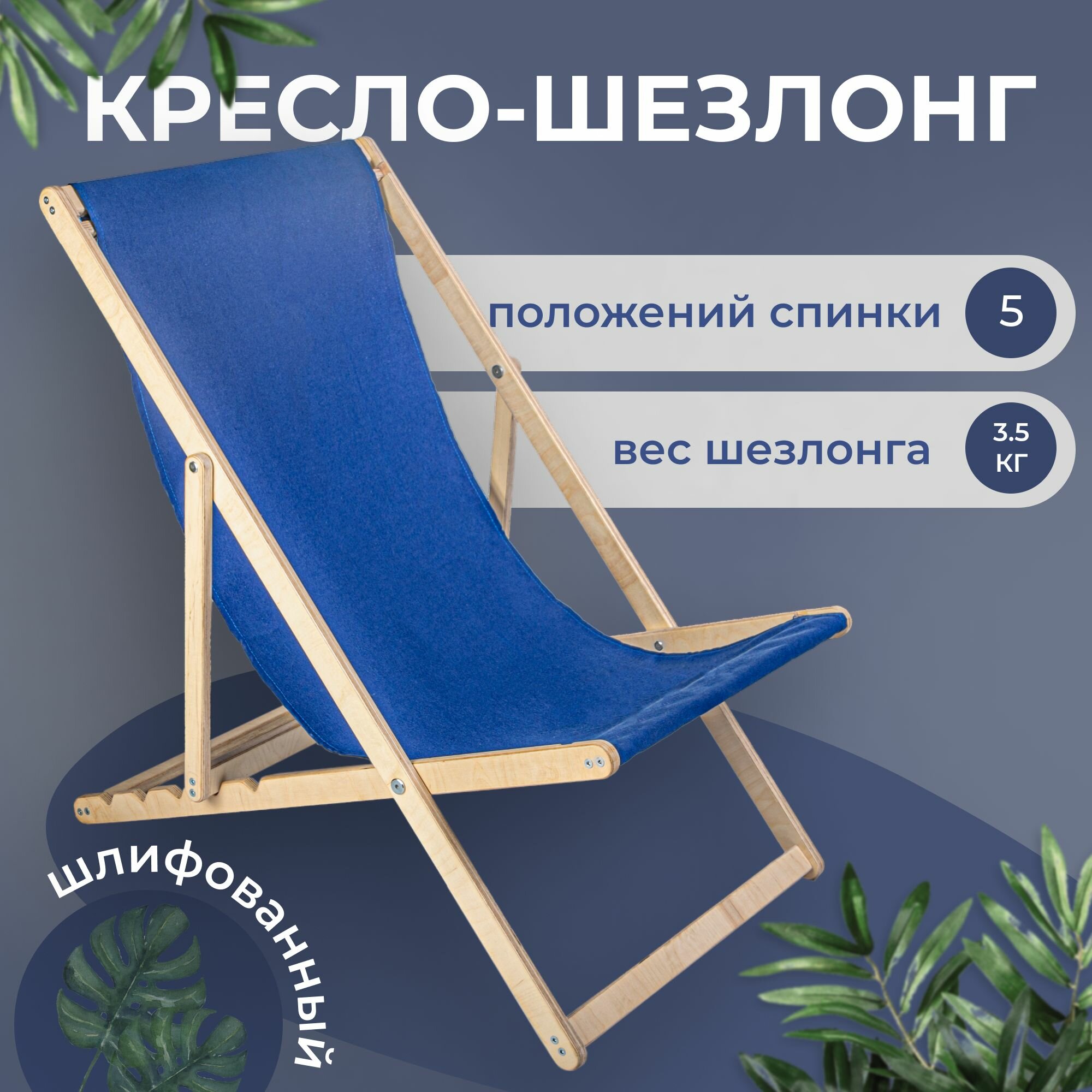 СохранитьСадовый шезлонг шлифованный с синей тканью складной для дома и для дачи интересное: