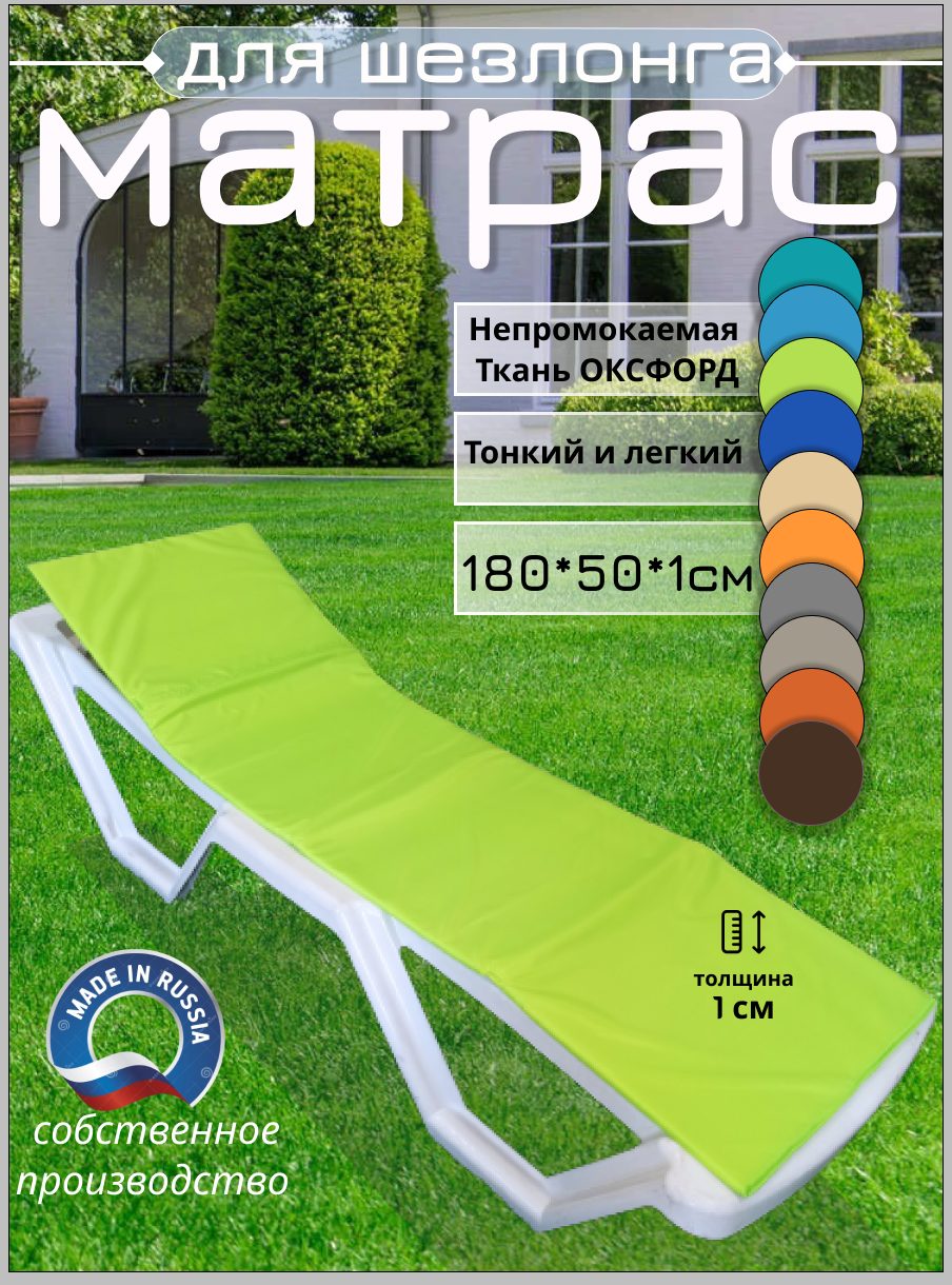 СохранитьМатрас для шезлонга водонепроницаемый, 180*50*1 см, зеленый, Чудо Кресло, коврик для пляжа, Оксфорд, односекционный интересное: