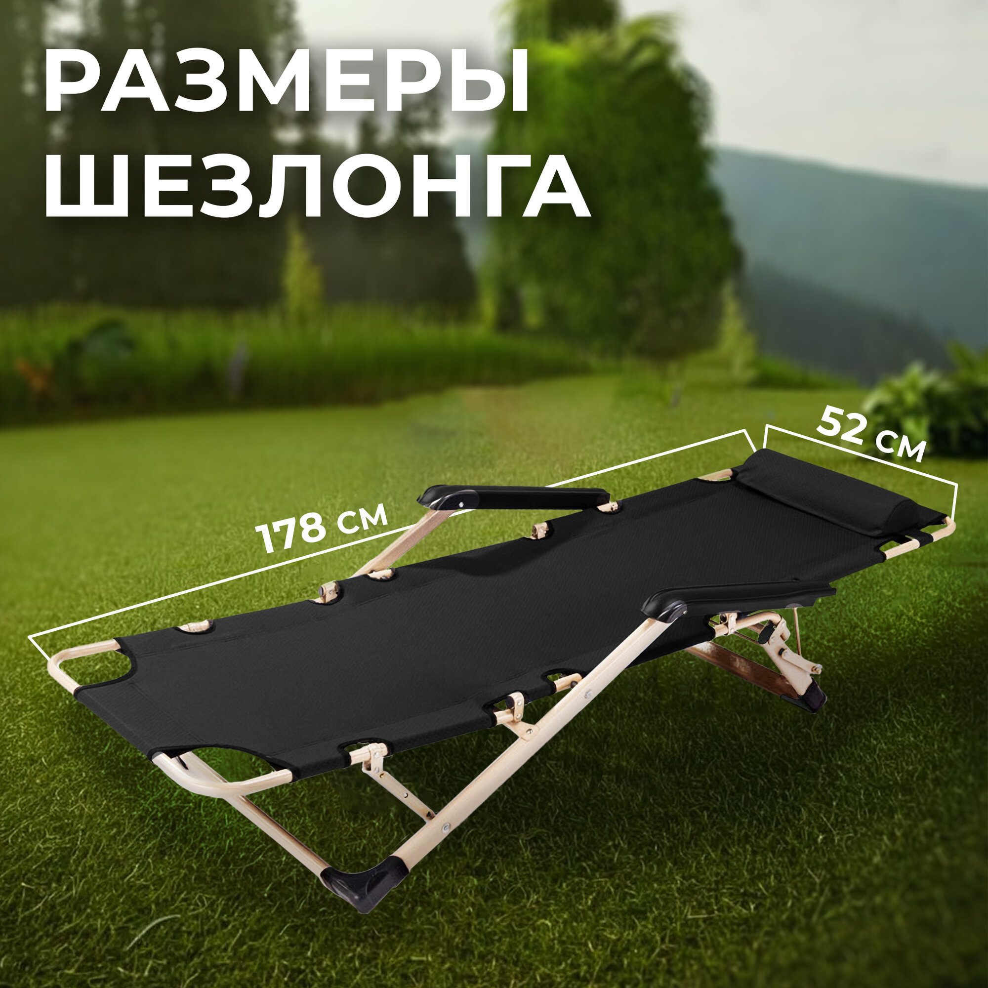 Кресло-шезлонг (раскладушка) складное с матрасом для дачи и сада, черное интересное:
