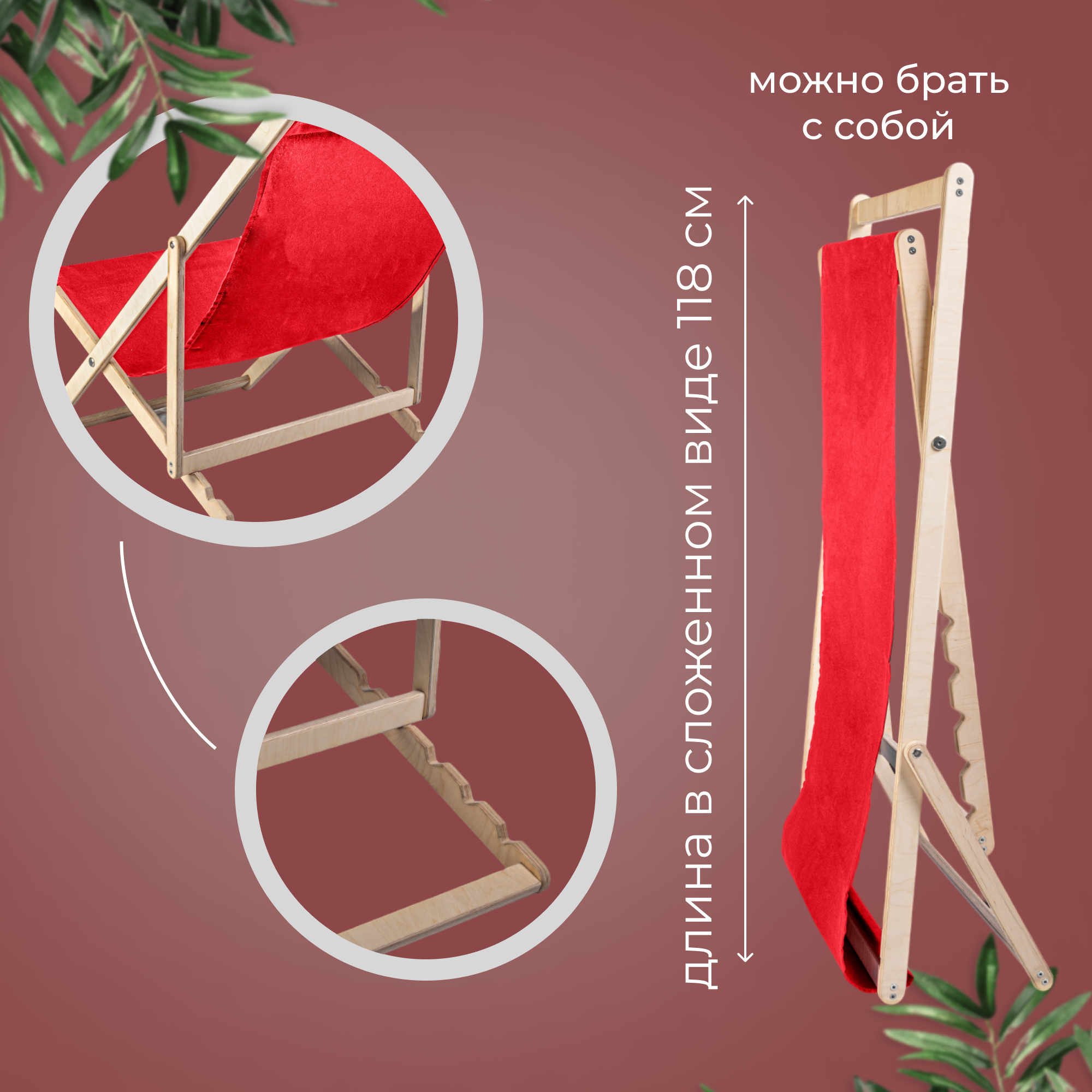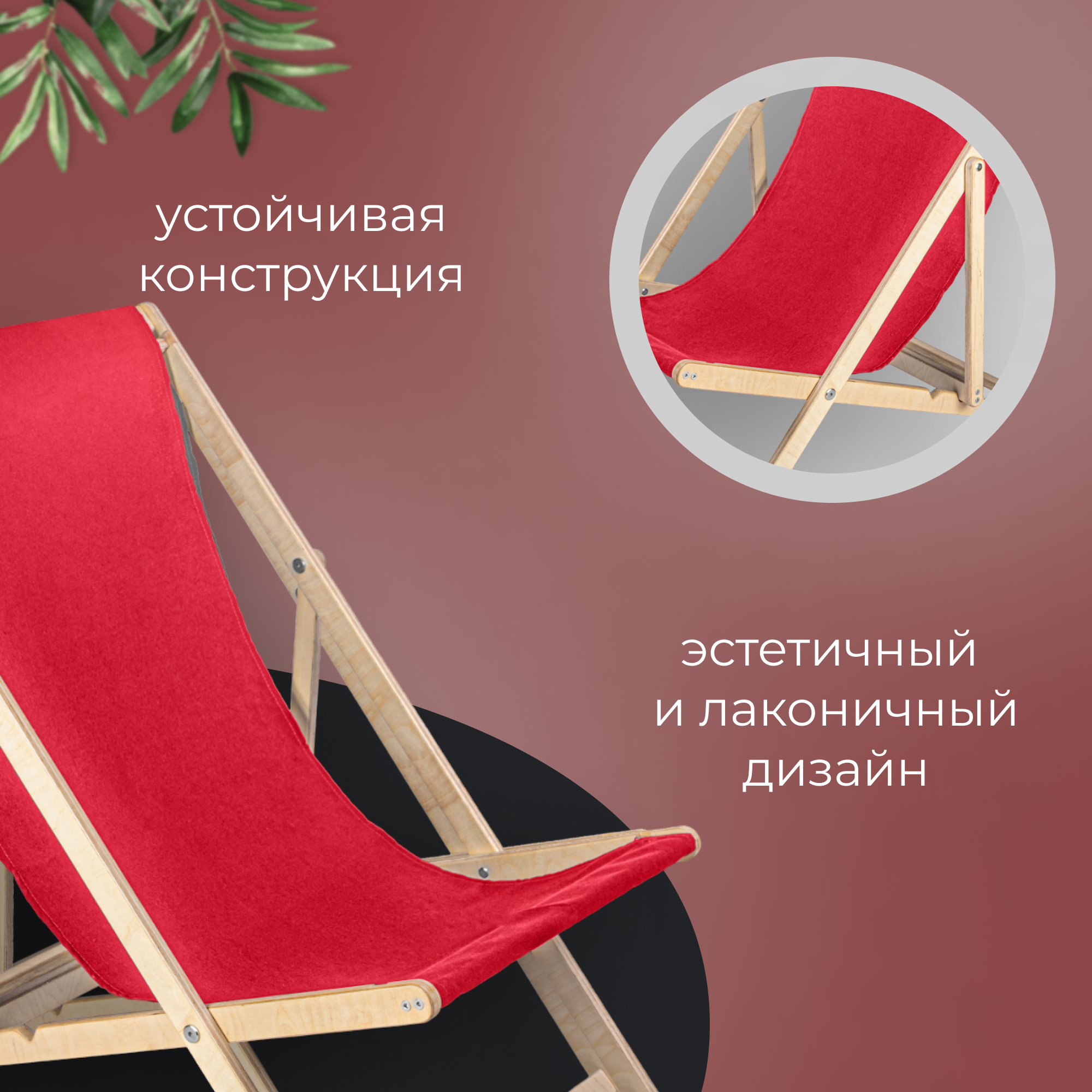 СохранитьКресло-шезлонг "Берёзка" без шлифовки с красной тканью складной для дома и дачи интересное: