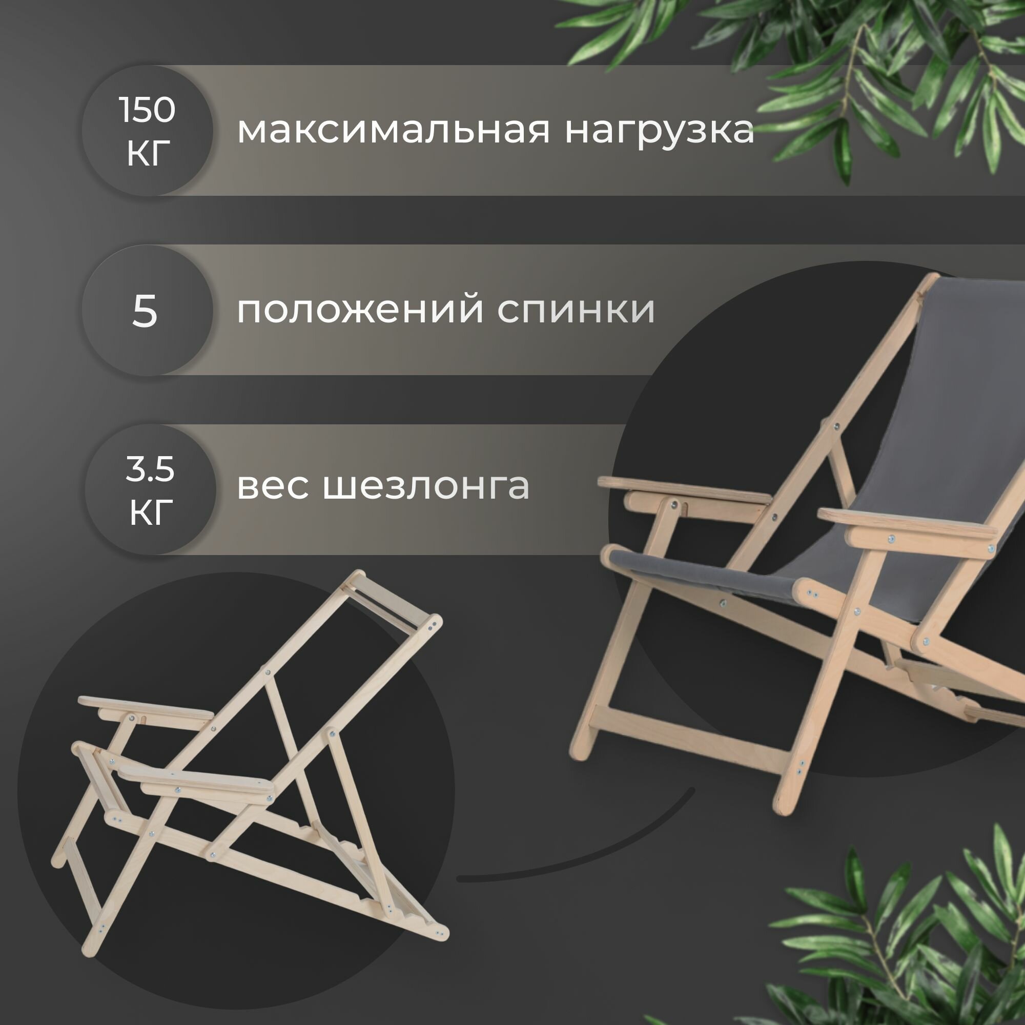 Кресло-шезлонг "Элби" с подлокотниками без шлифовки с серой тканью для дома и для дачи интересное:
