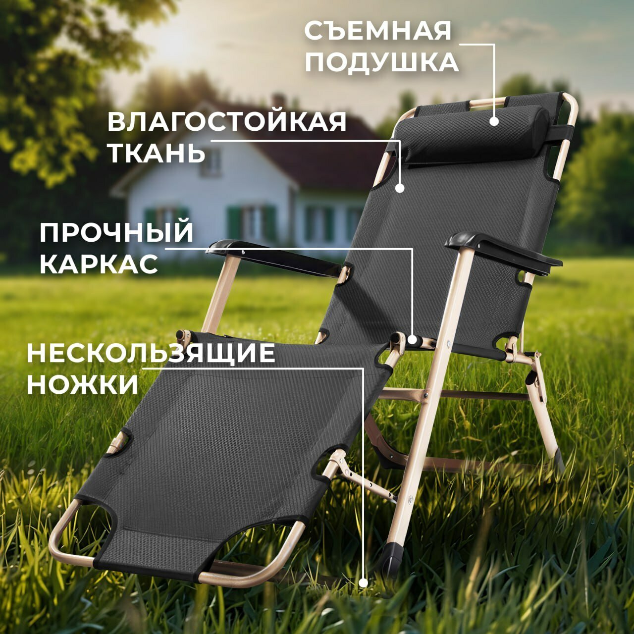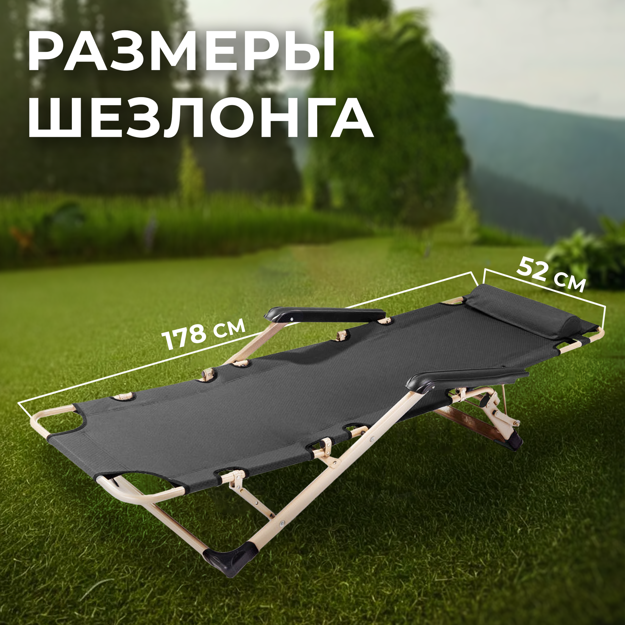 Кресло-шезлонг (раскладушка) складное с матрасом для дачи и сада, черное