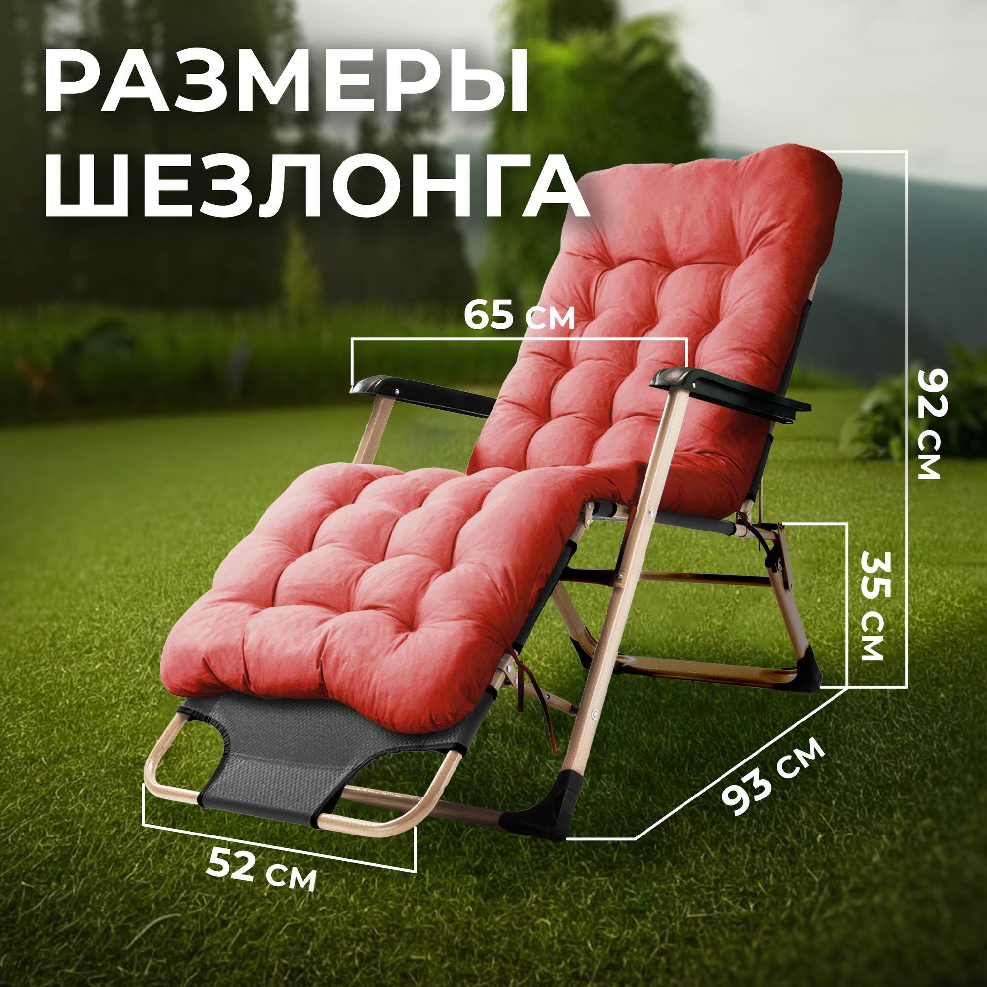 Кресло-шезлонг (раскладушка) складное с матрасом для дачи и сада, бордовое интересное: