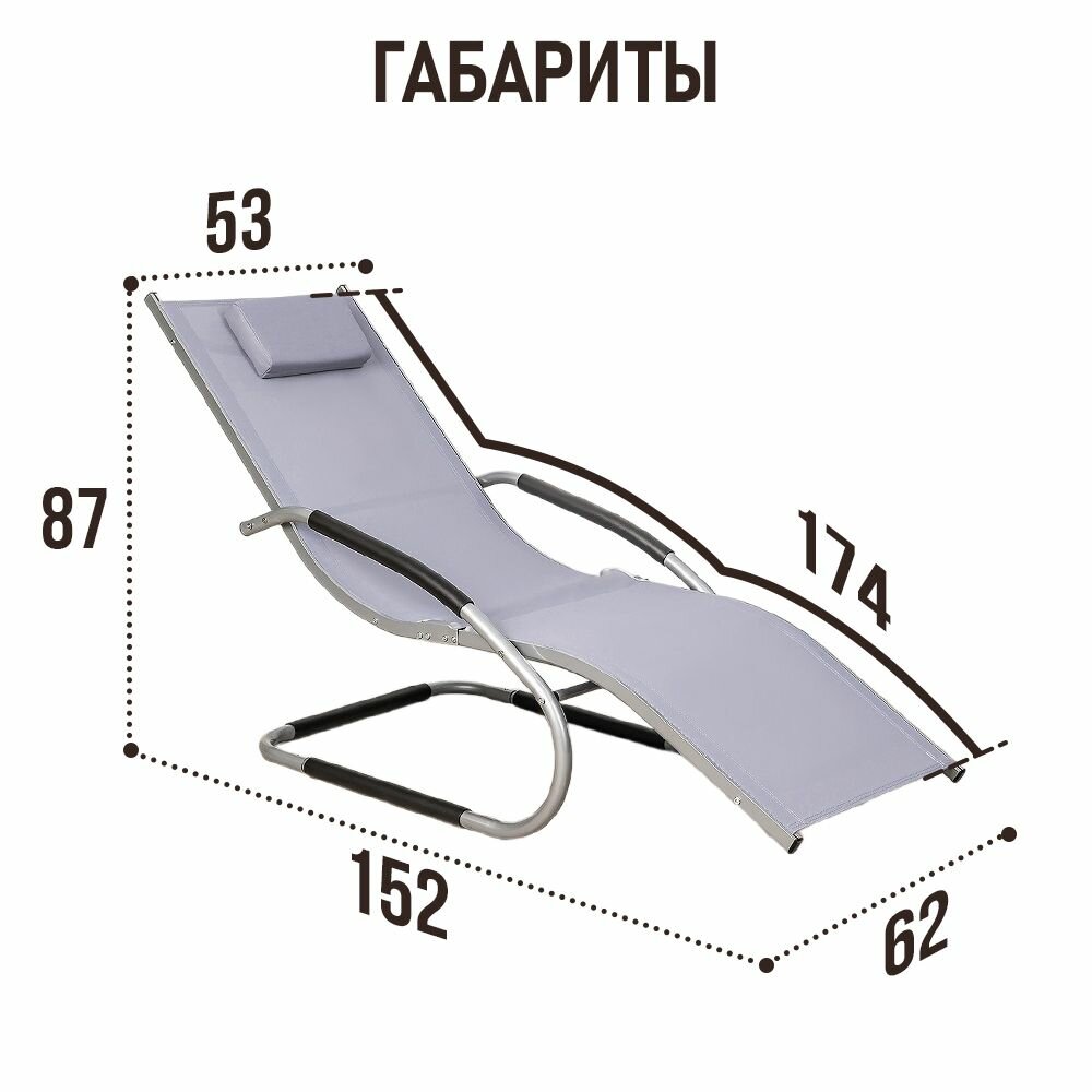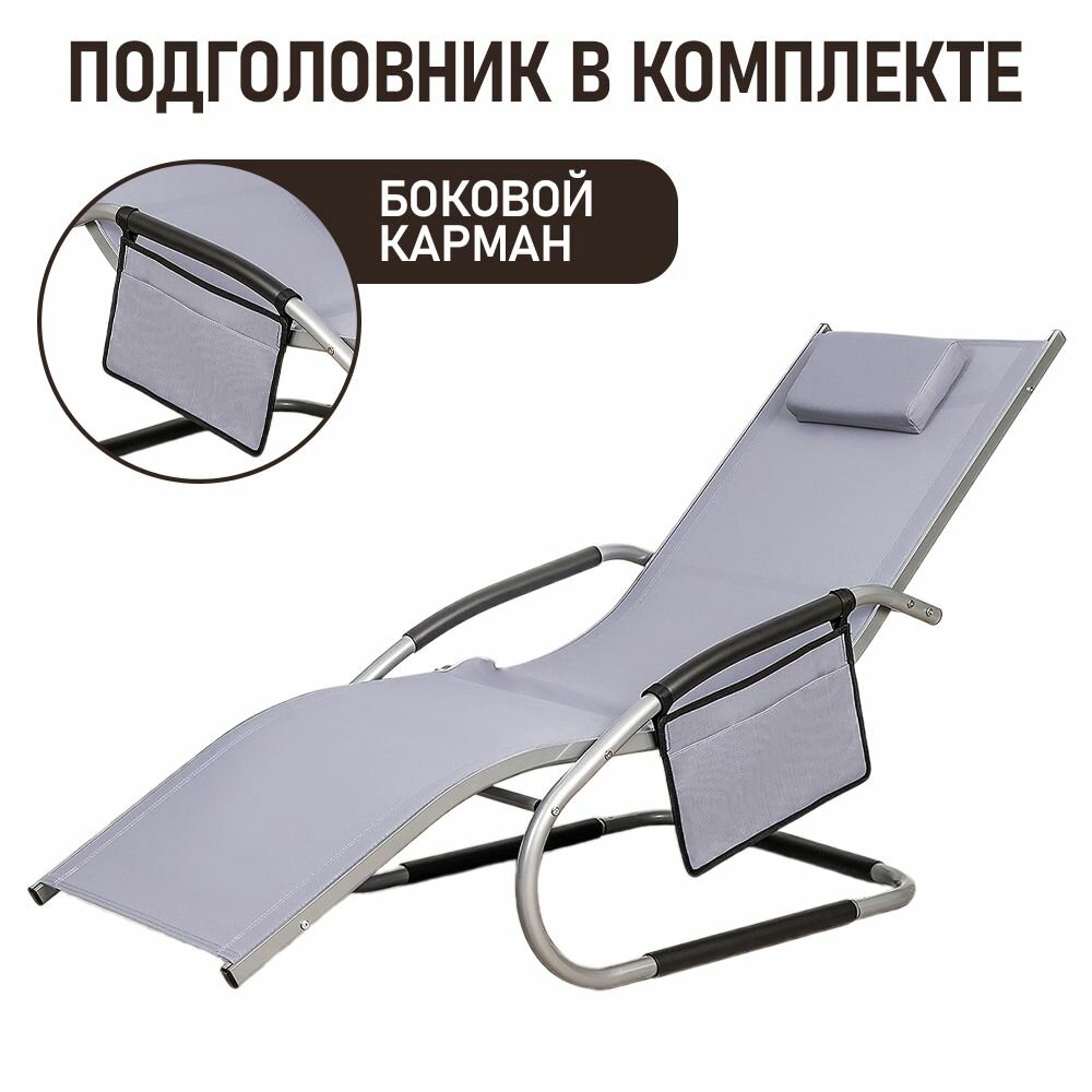 Шезлонг-кресло для дачи анатомический из стали и текстилена Рипозо, серый