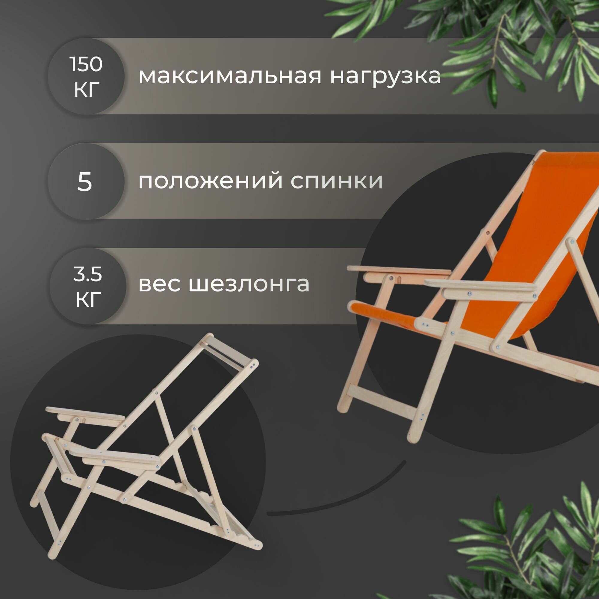 Кресло-шезлонг "Элби" с подлокотниками без шлифовки с оранжевой тканью для дома и для дачи интересное: