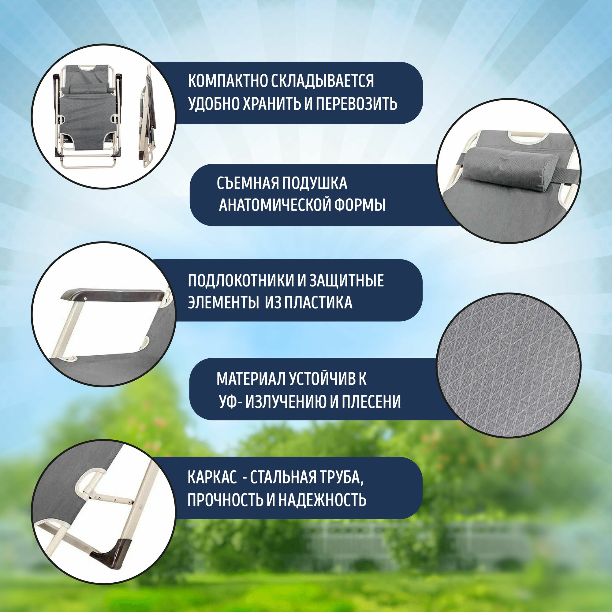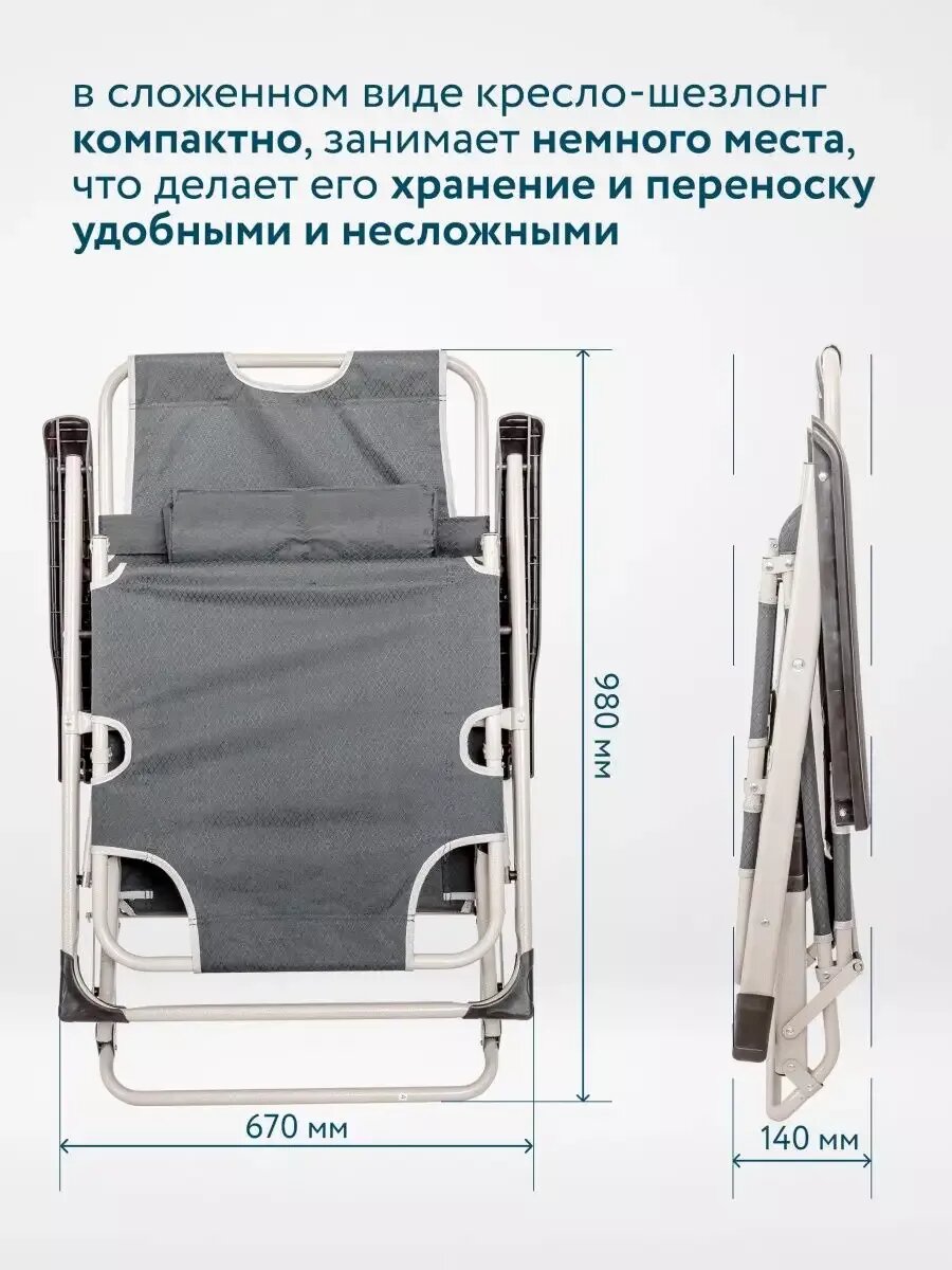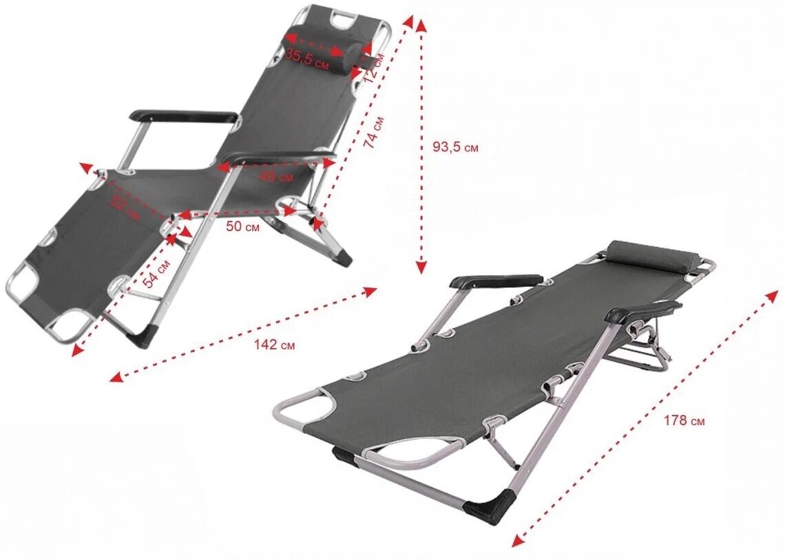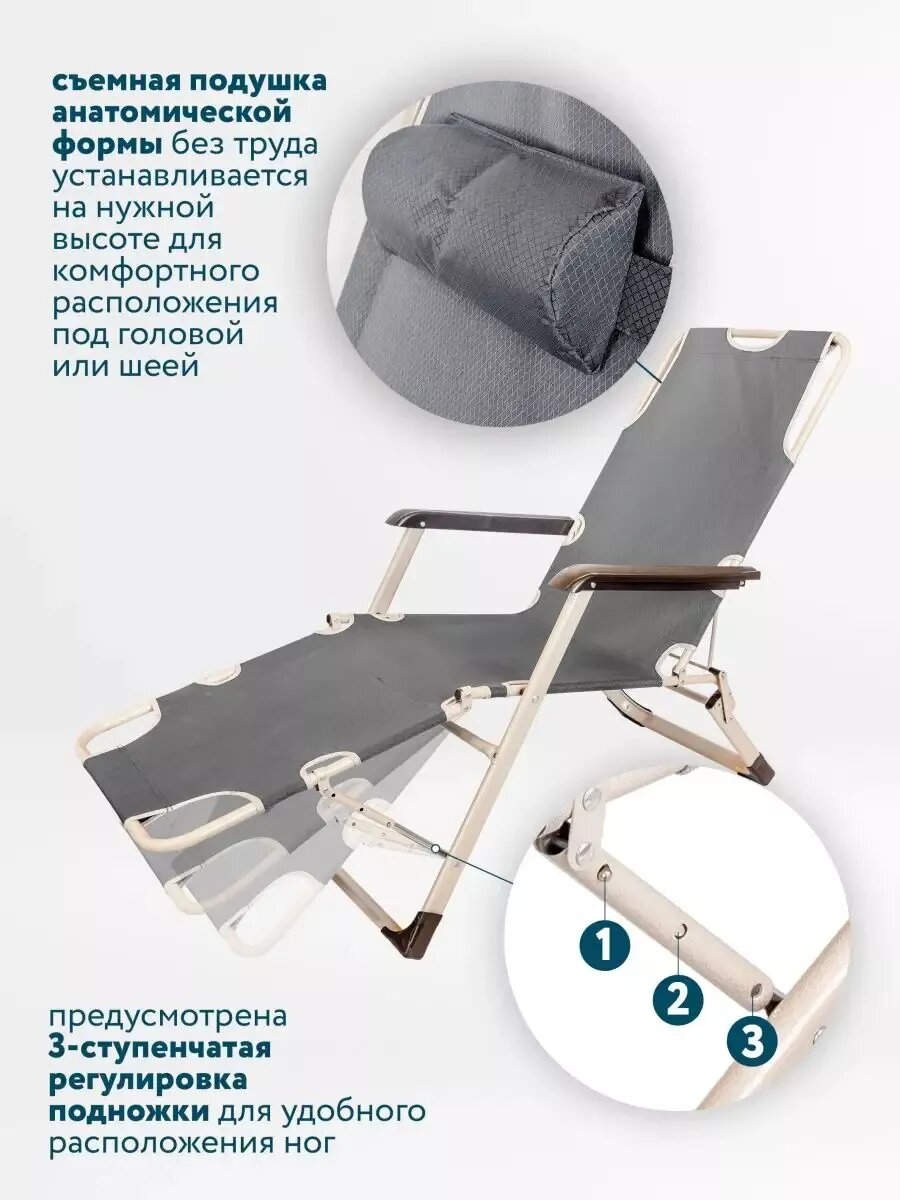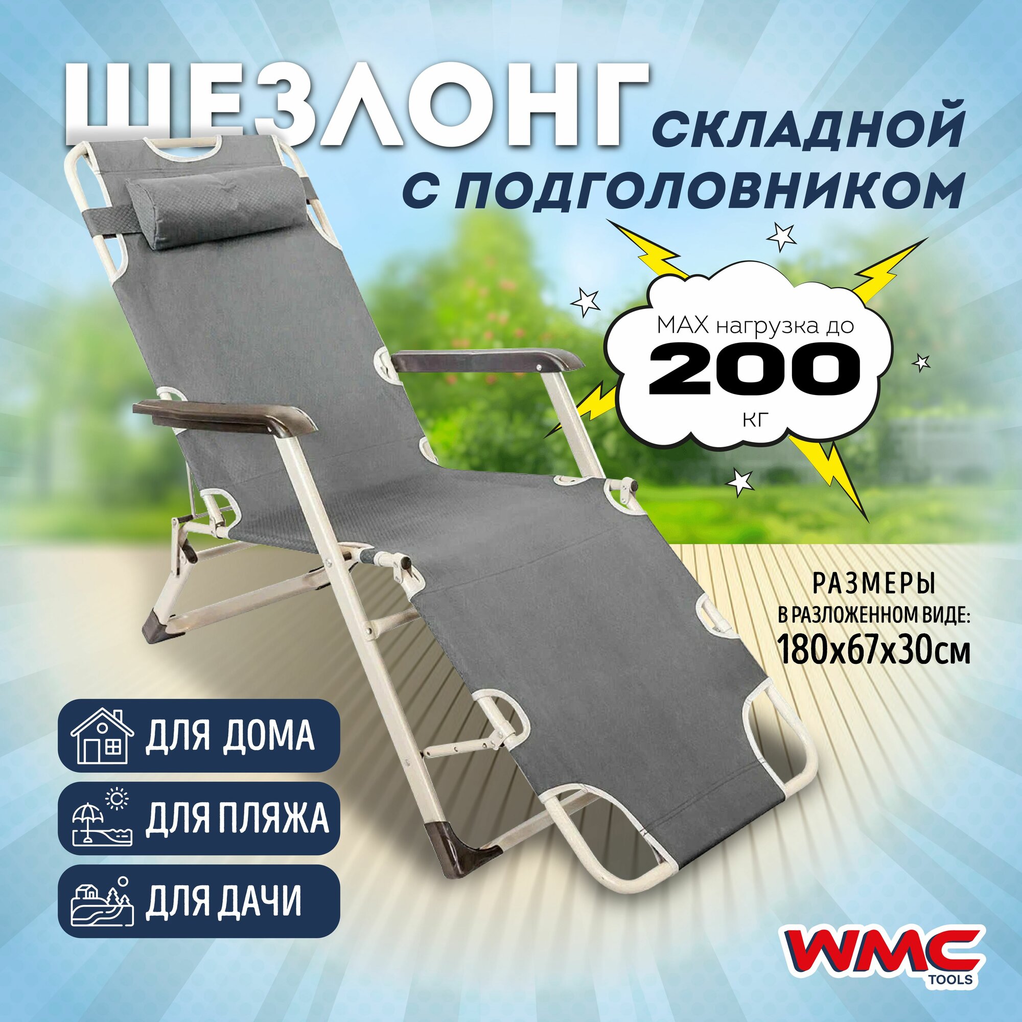 Шезлонг складной с подголовником и подлокотниками (510х1770мм, серый) WMC TOOLS WMC-FG-HY-8007G интересное: