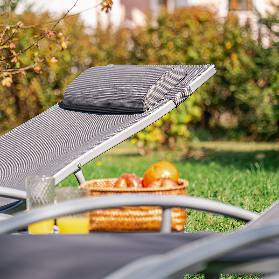 Шезлонг GARDINI Флэт, складной, с регулировкой наклона, алюминиевый, серый