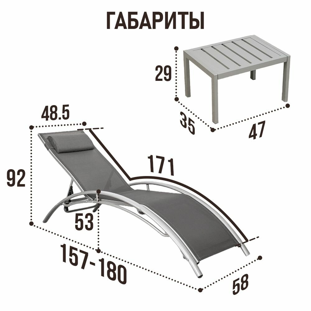 Шезлонг садовый для дачи складной алюминиевый Маре. Комплект 2 шт для дома
