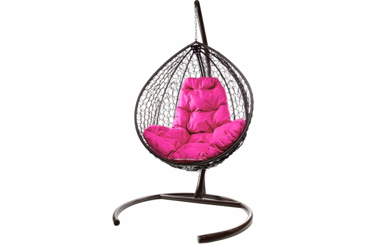 Подвесное кресло из ротанга "Капля" коричневое с розовой подушкой M-Group