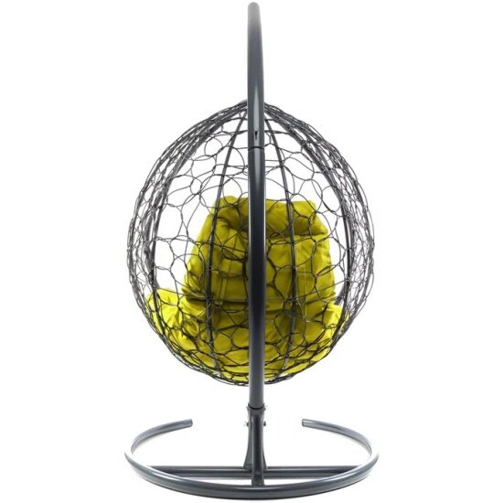 Подвесное кресло из ротанга "Капля" серое с жёлтой подушкой M-Group интересное:
