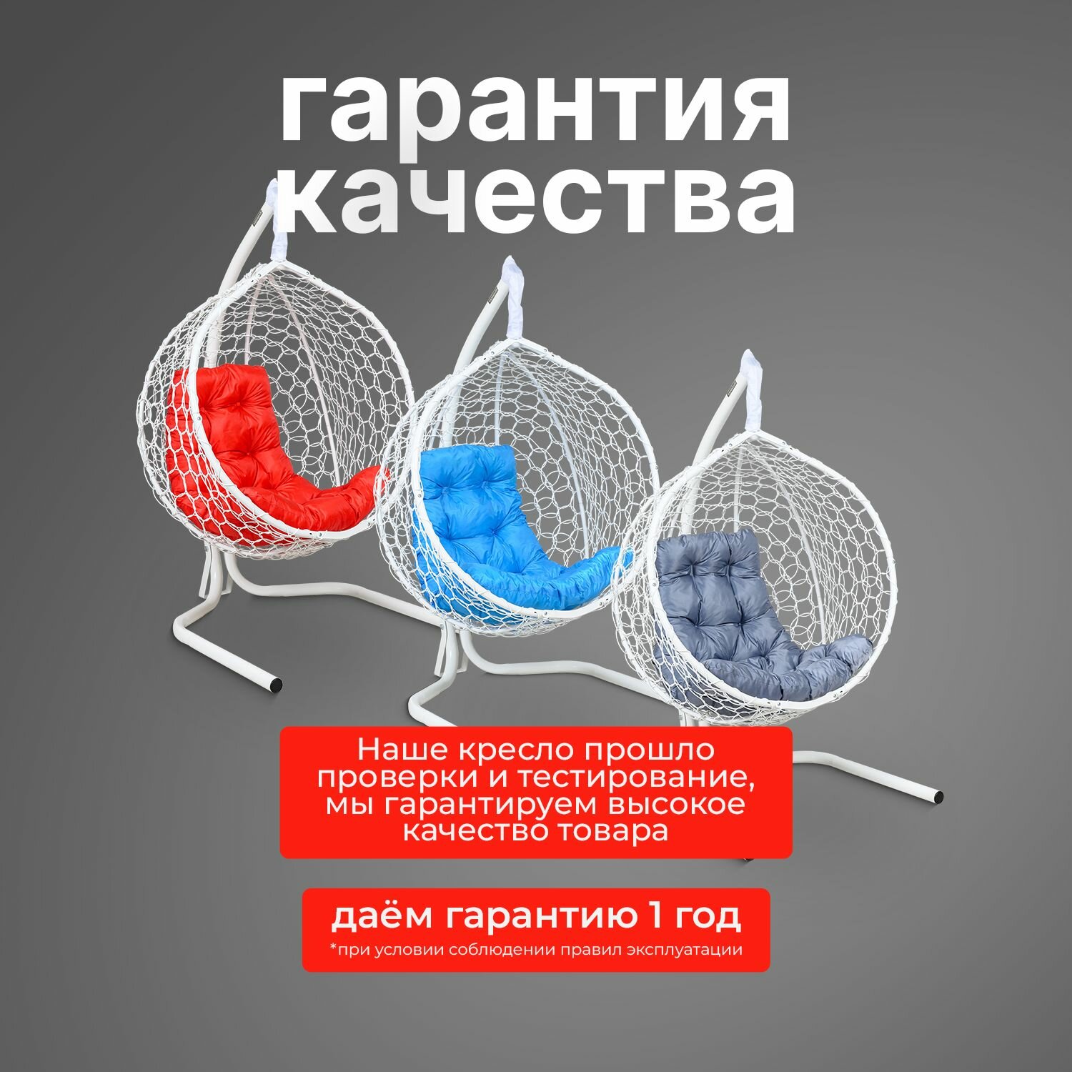 Подвесное кресло кокон садовое 175х105х63см. Усиленная стойка до 200 кг Белый, подушка трапеция Красная.