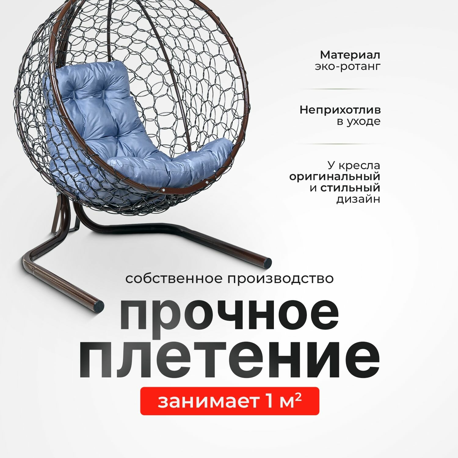 Подвесное кресло кокон садовое 175х105х63см. Усиленная стойка до 200 кг Венге, подушка трапеция Голубая.