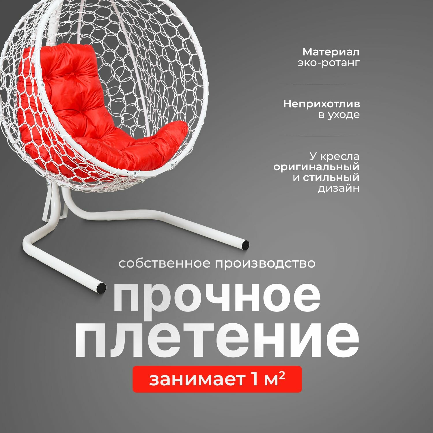 СохранитьПодвесное кресло кокон садовое 175х105х63см. Усиленная стойка до 200 кг Белый, подушка трапеция Красная. интересное: