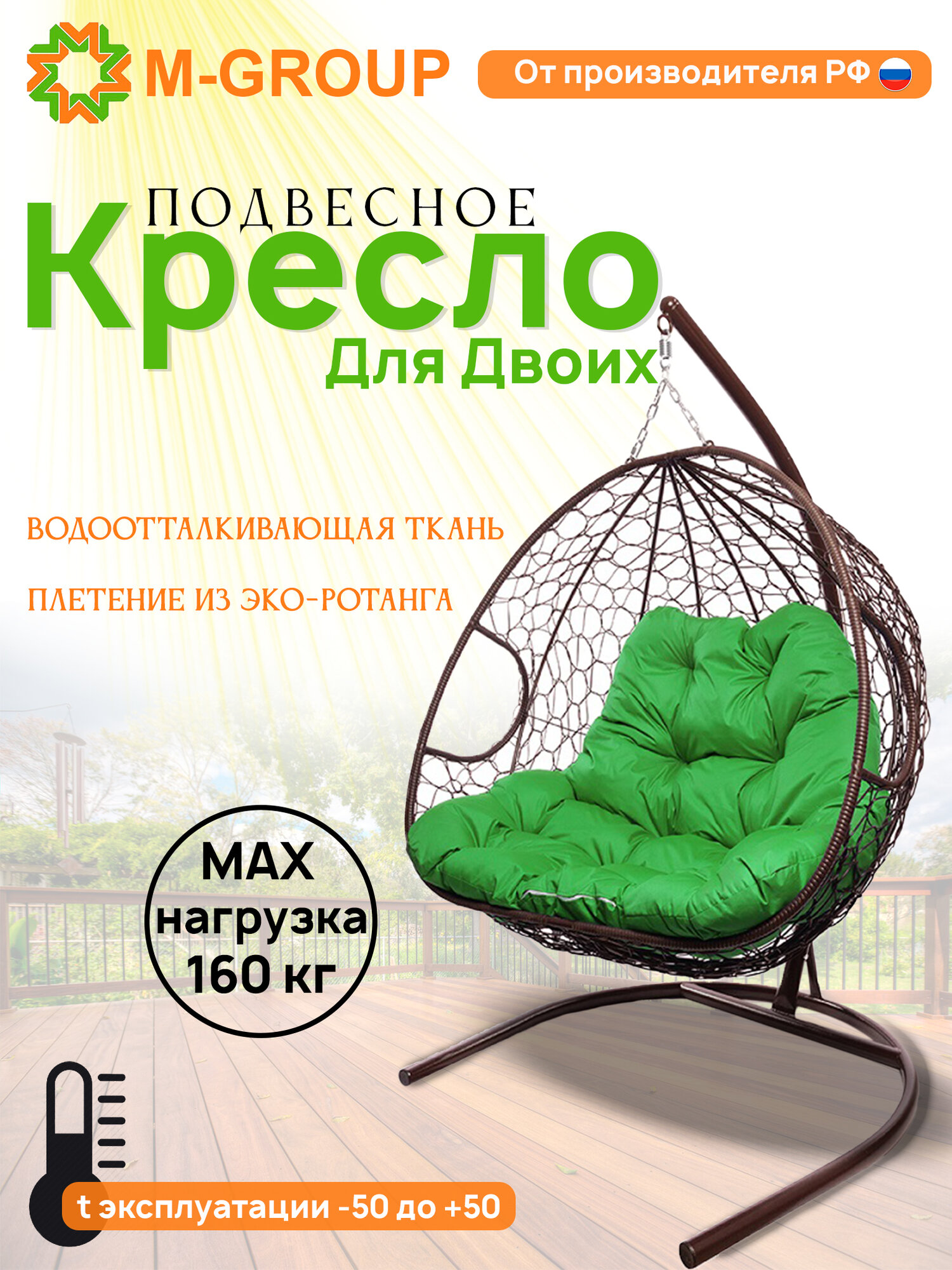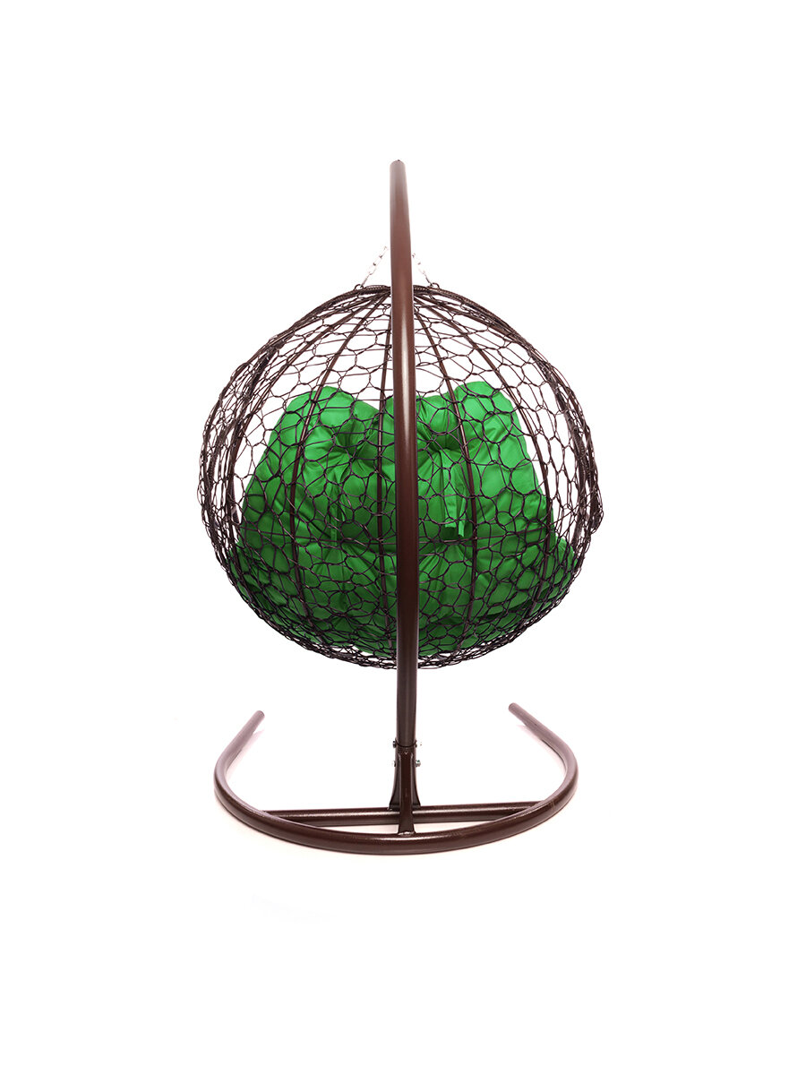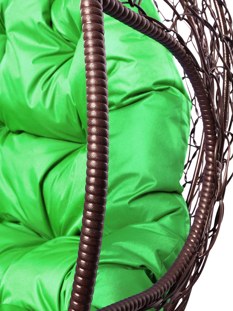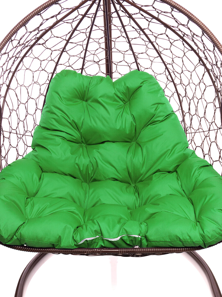 Купить Подвесное кресло из ротанга "Для двоих" коричневое с зеленой подушкой M-GROUP