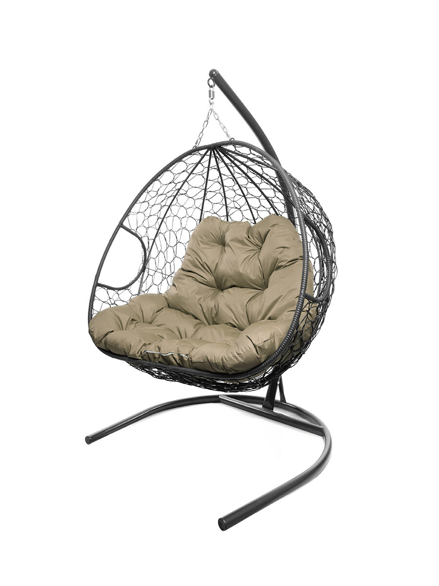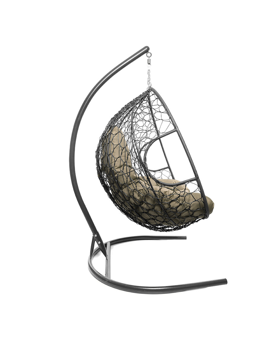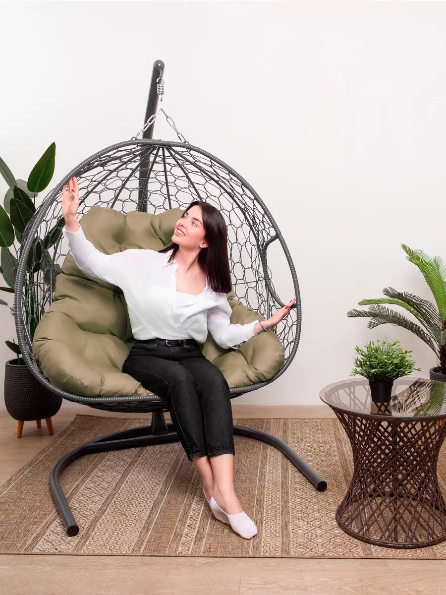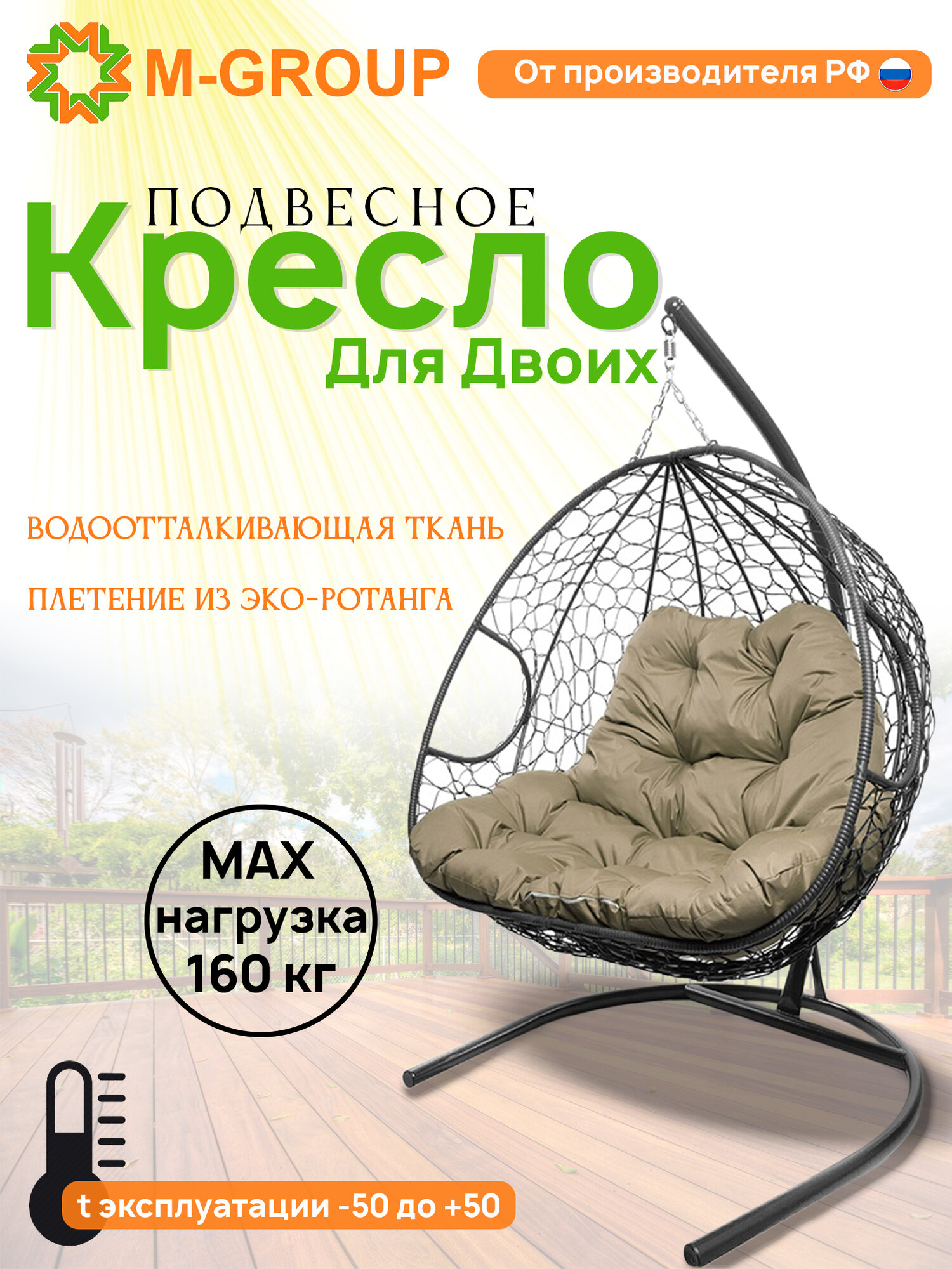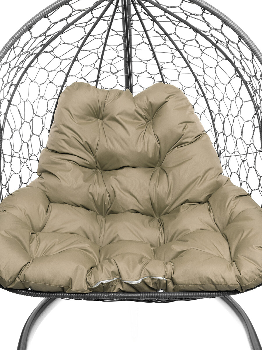Купить Подвесное кресло из ротанга "Для двоих" серое с бежевой подушкой M-GROUP