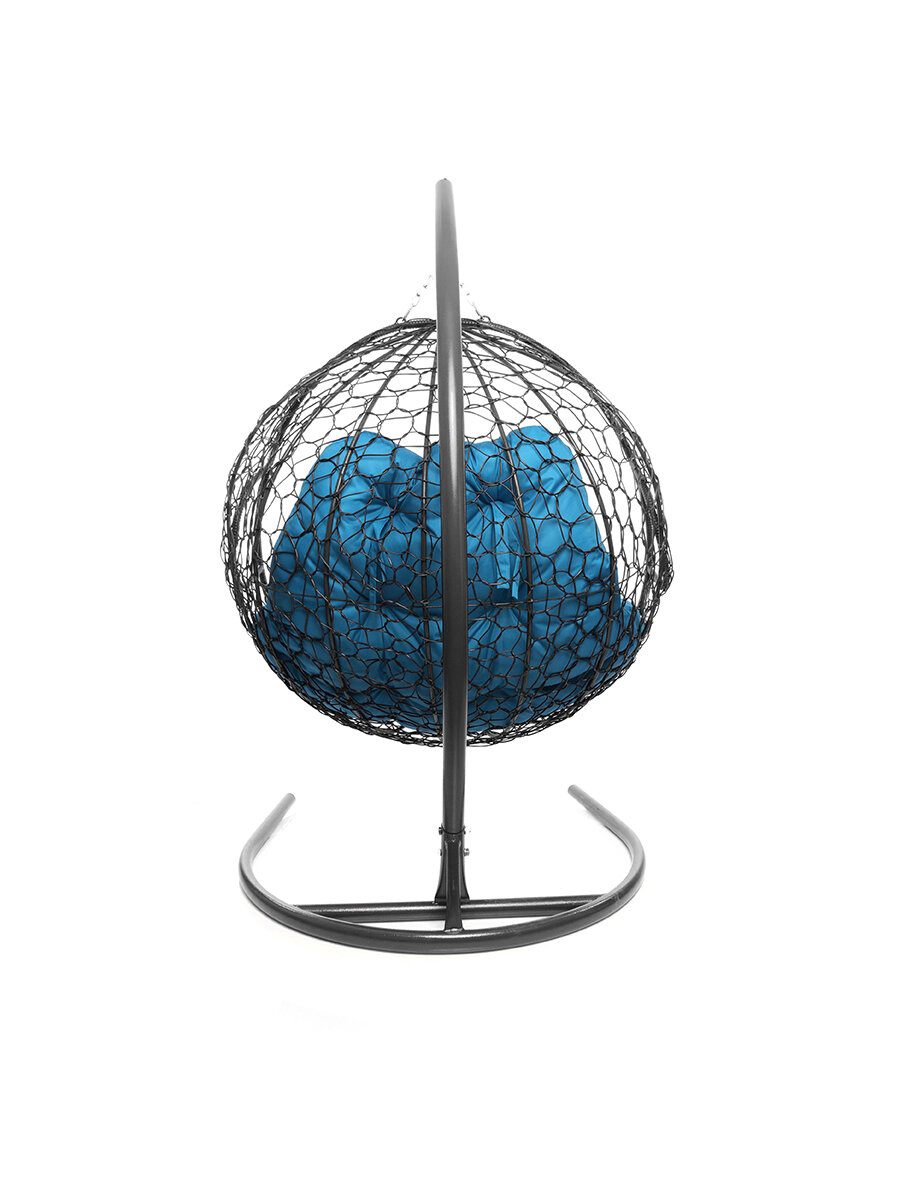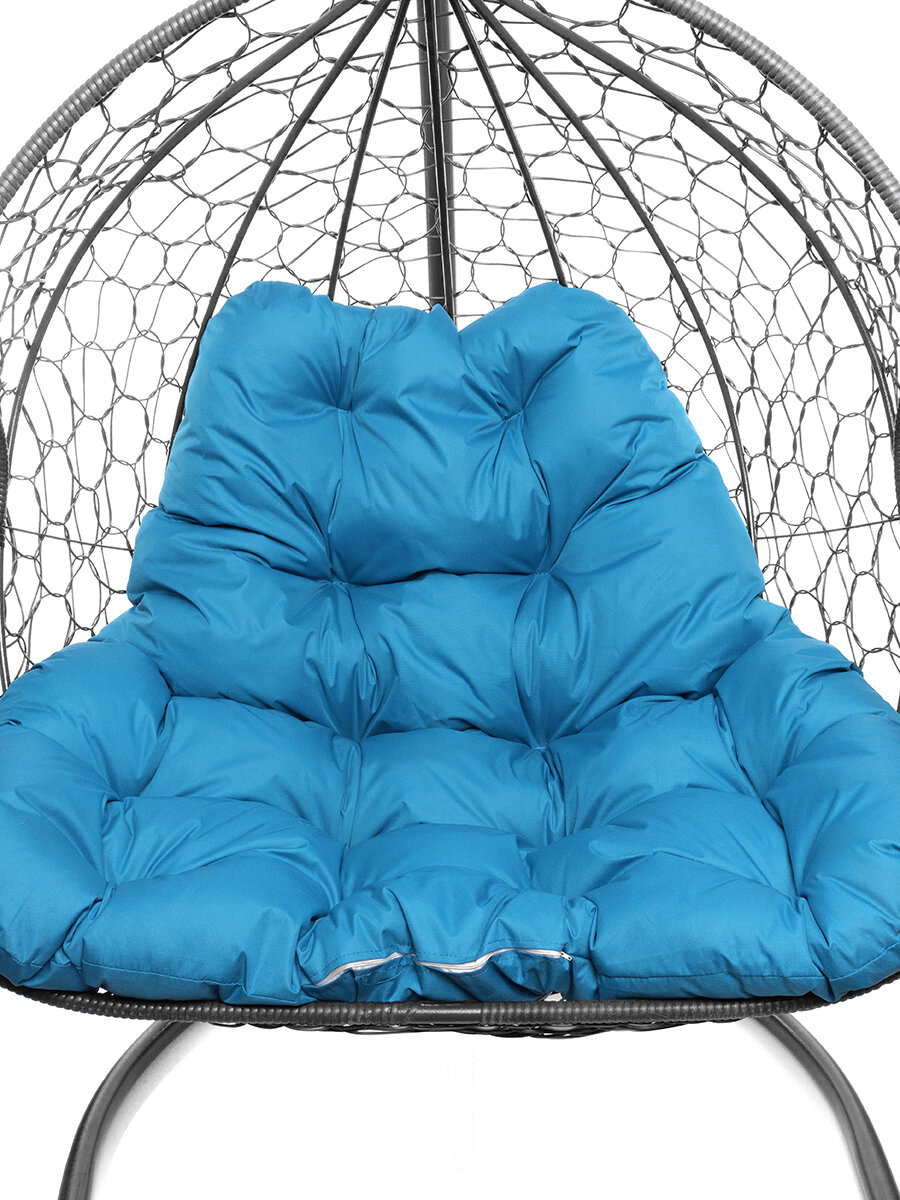 Купить Подвесное кресло из ротанга "Для двоих" серое с голубой подушкой M-GROUP