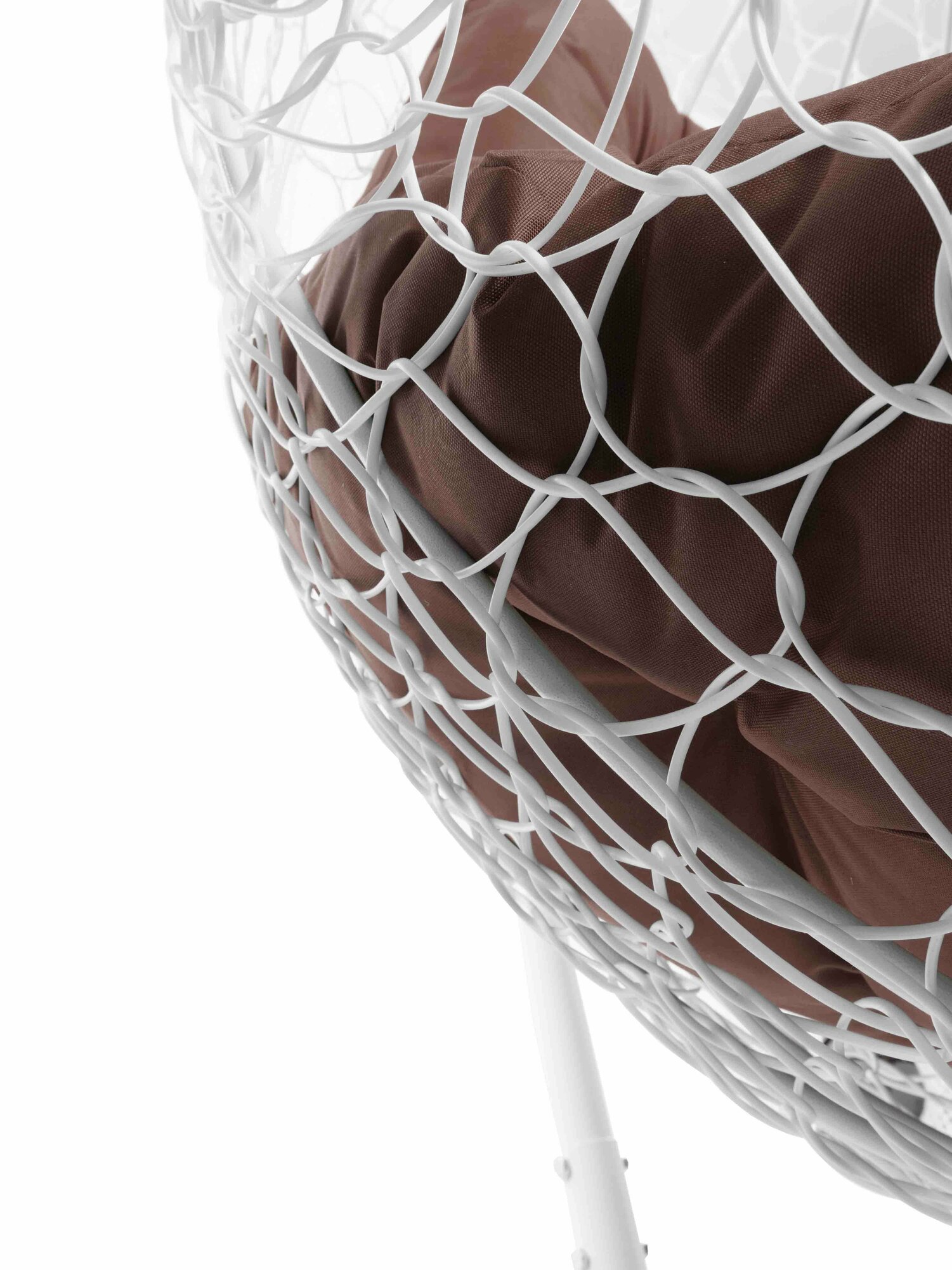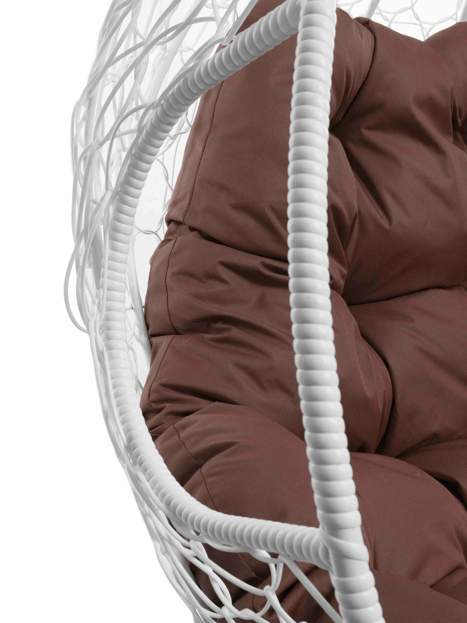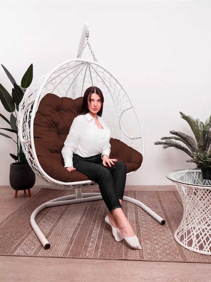 Подвесное кресло для двоих с ротангом белое, коричневая подушка