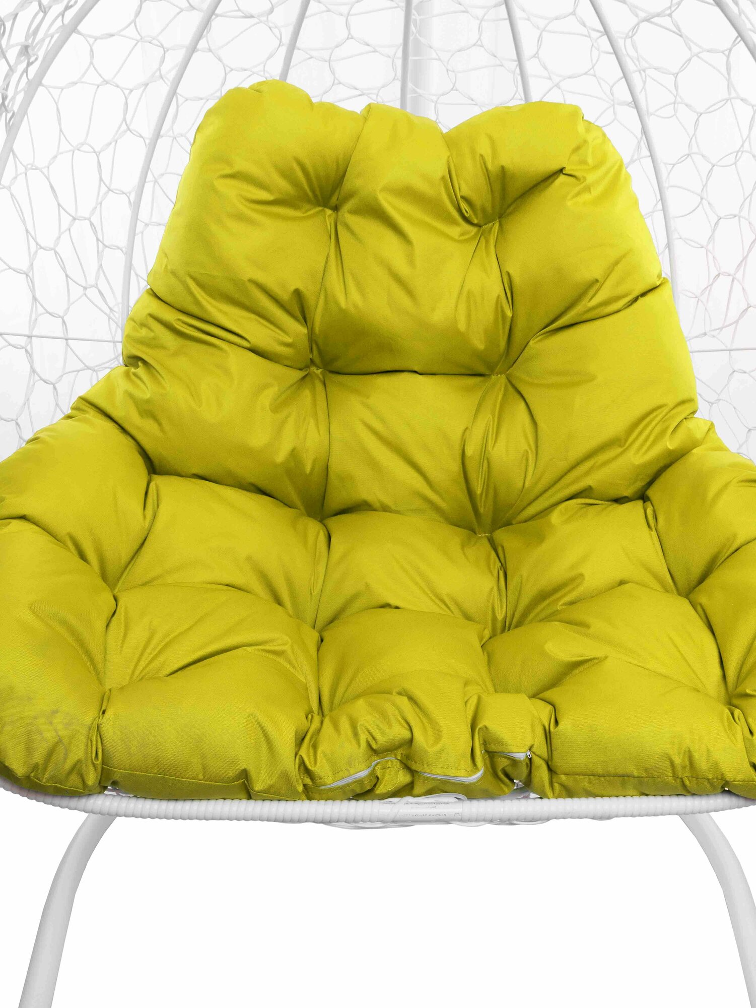 Подвесное кресло из ротанга "Для двоих" белое с зеленой подушкой M-GROUP