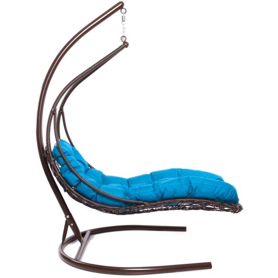 Подвесное кресло M-group лежачее, с ротангом коричневое, голубая подушка интересное:
