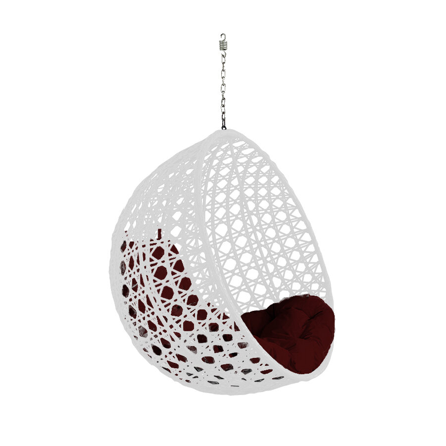 Подвесное кресло круг люкс белое (без стойки), бордовая подушка интересное: