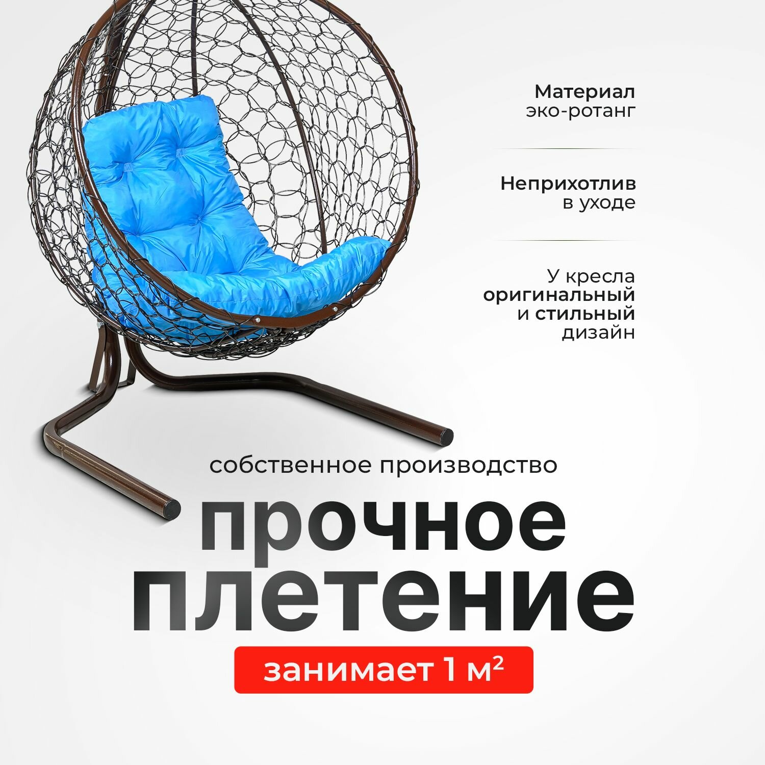 СохранитьПодвесное кресло кокон садовое 175х105х63см. Усиленная стойка до 200 кг Венге, подушка трапеция Голубая. интересное: