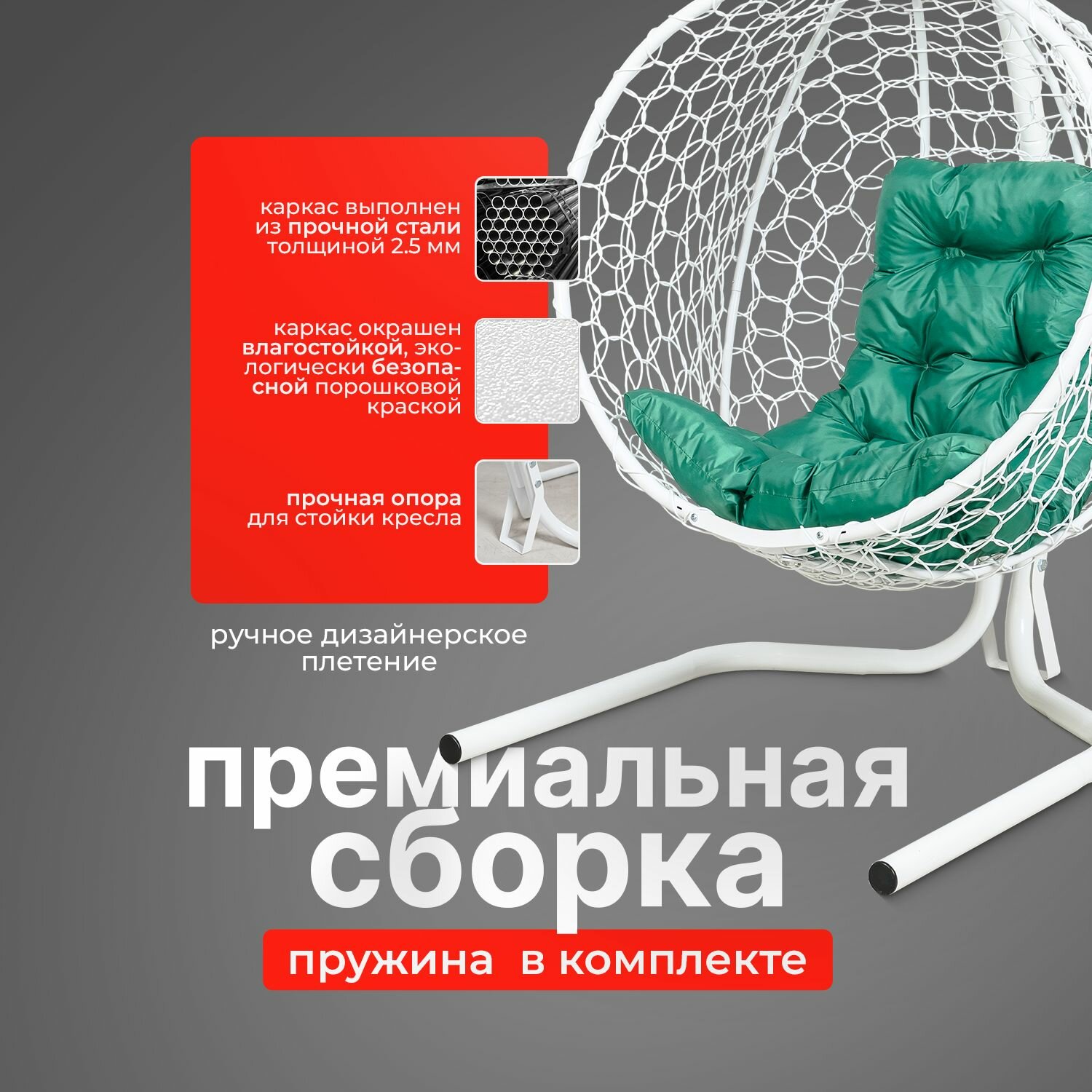 Купить Подвесное кресло кокон садовое 175х105х63см. Усиленная стойка до 200 кг Белый, подушка трапеция Зеленая.