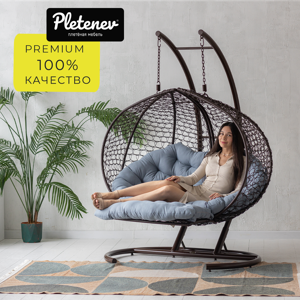 Подвесное кресло Pletenev Двухместное с водоотталкивающей уличной подушкой
