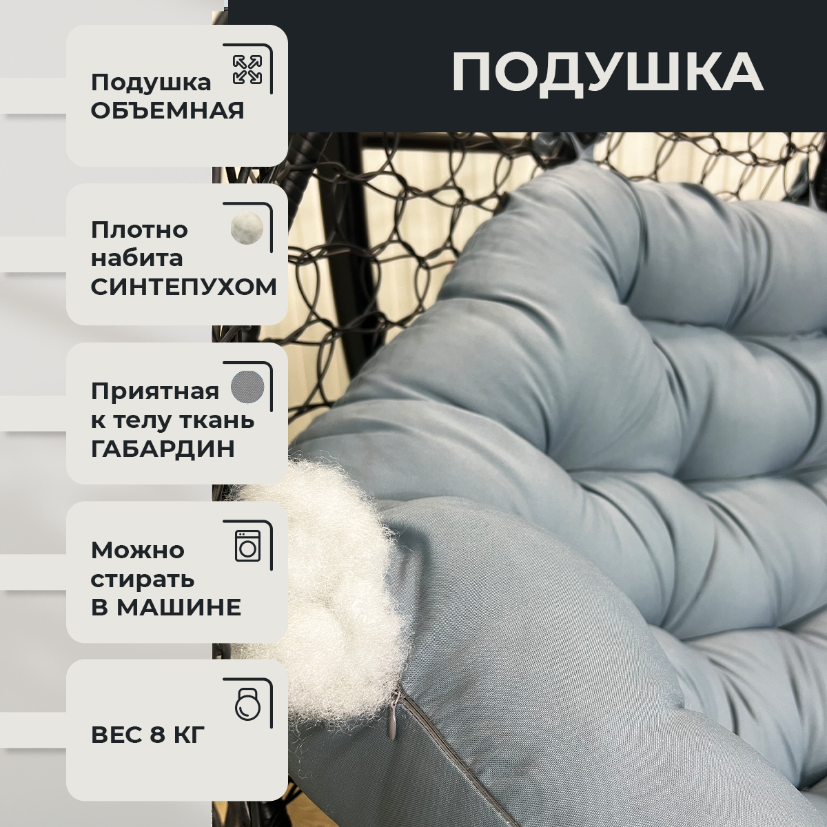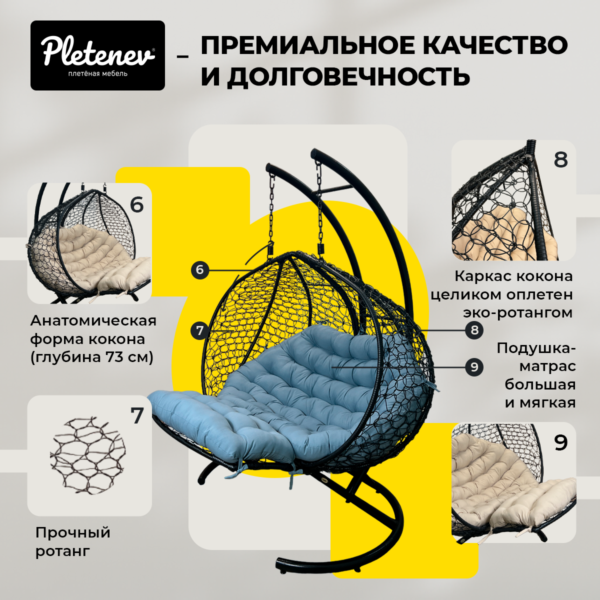 СохранитьПодвесное кресло-реклайнер "Pletenev" двухместное черное со светло-серой подушкой интересное: