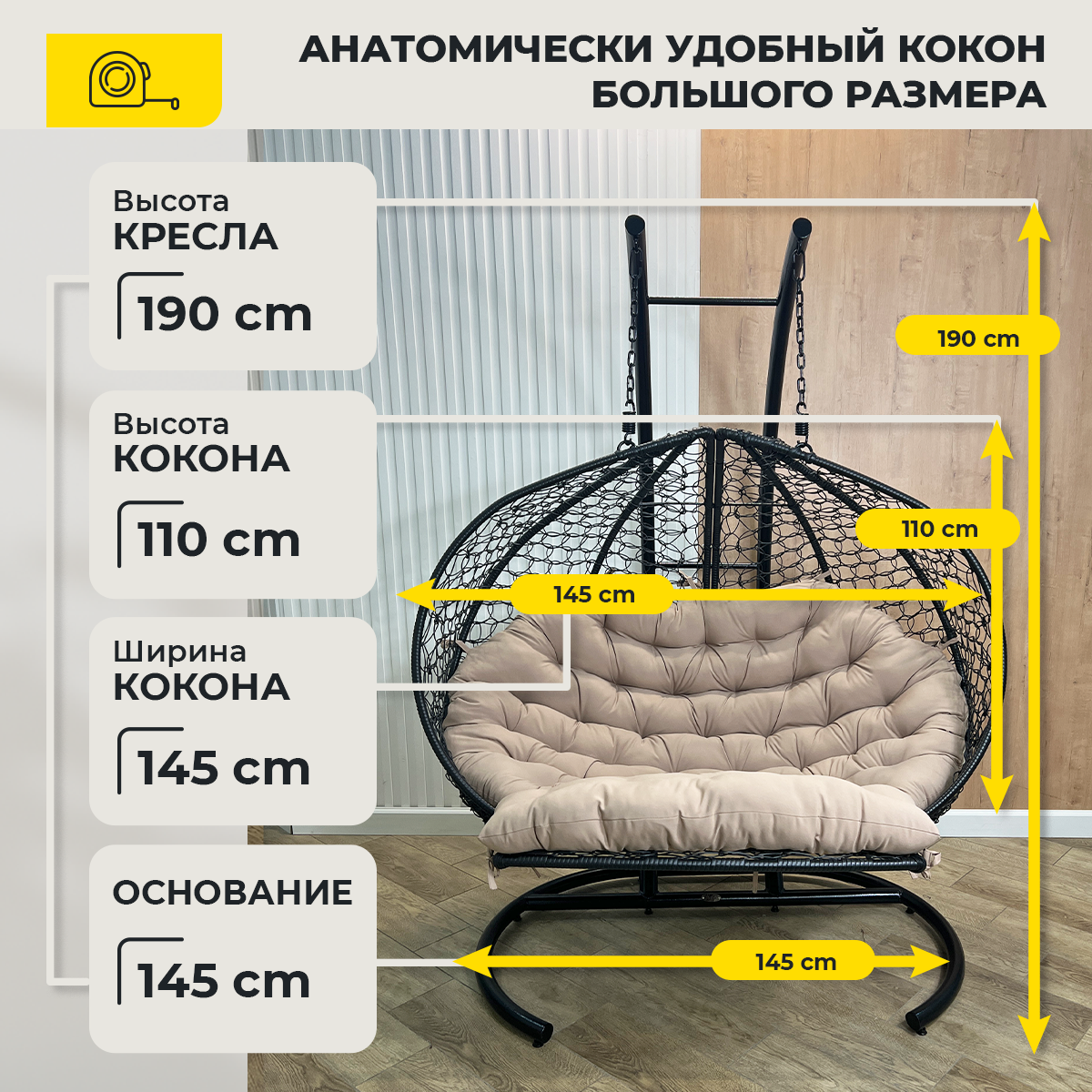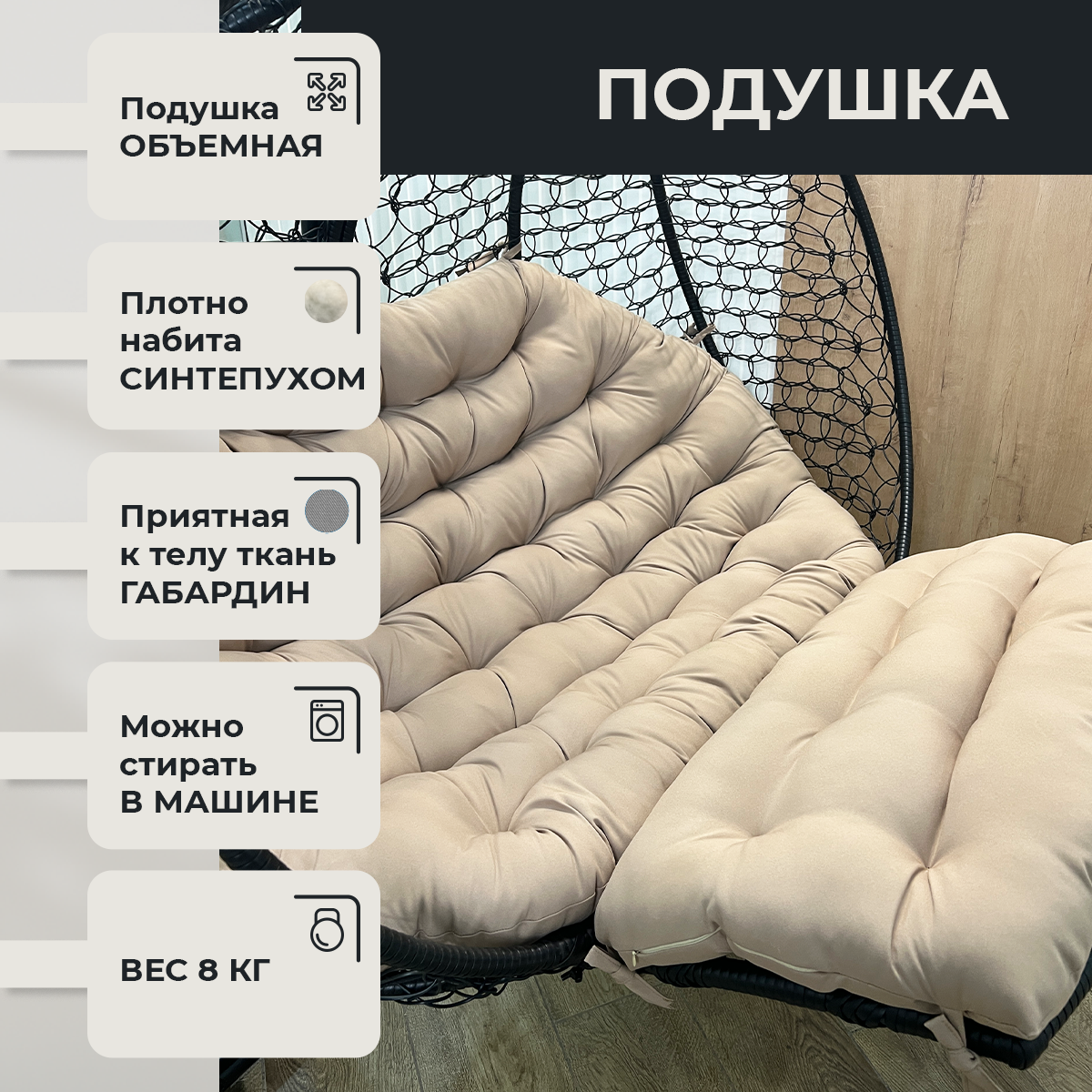 Подвесное кресло Pletenev Двухместное Реклайнер Черный + бежевая подушка