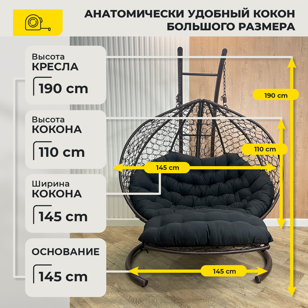 СохранитьПодвесное кресло-реклайнер "Pletenev", двухместное, коричневое с черной подушкой интересное: