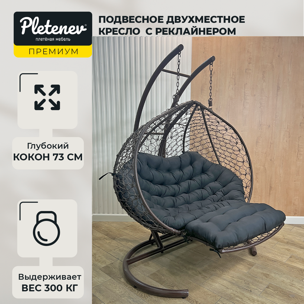 Подвесное кресло Pletenev Двухместное Реклайнер без стойки
