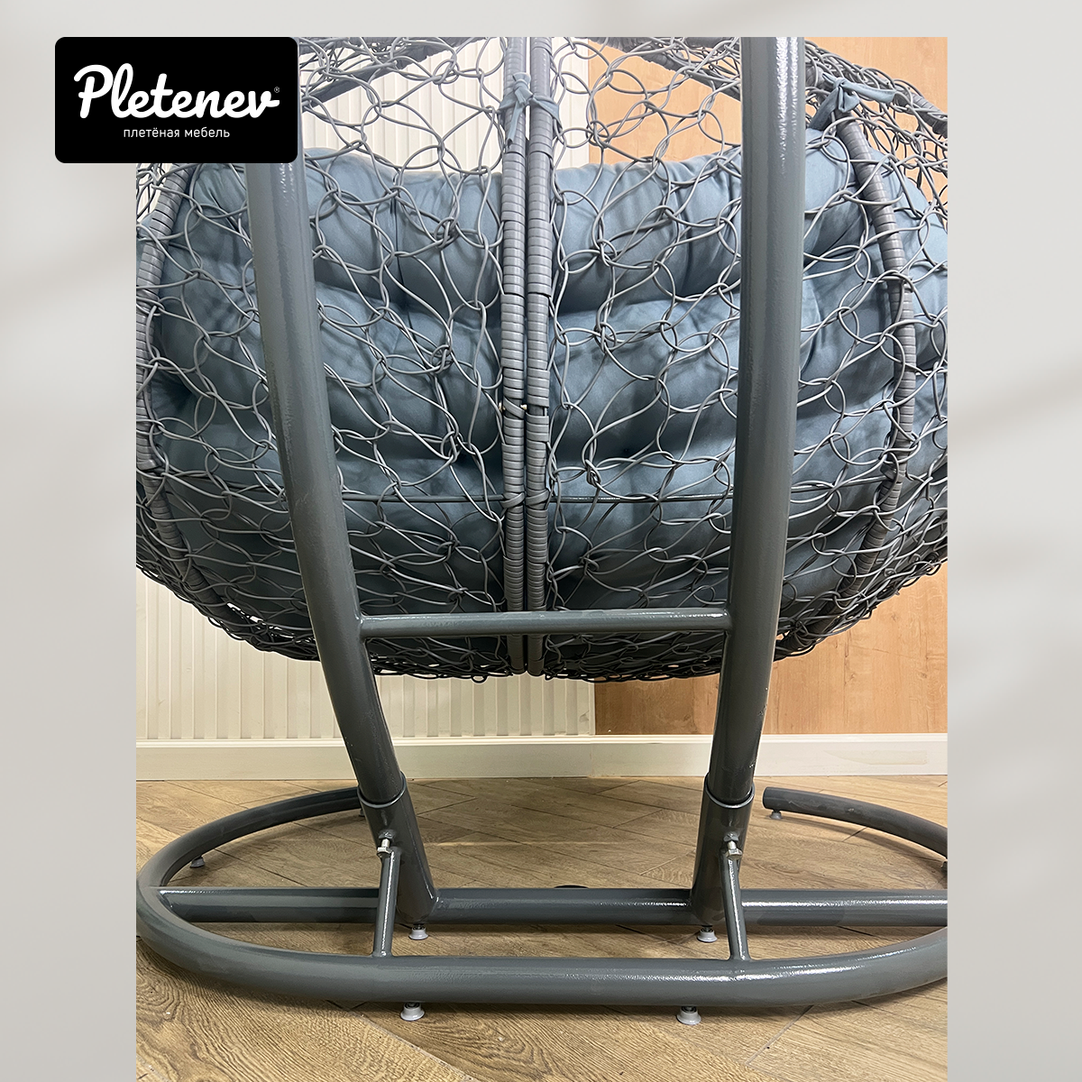 Подвесное кресло Pletenev Двухместное серое с черной подушкой с реклайнером