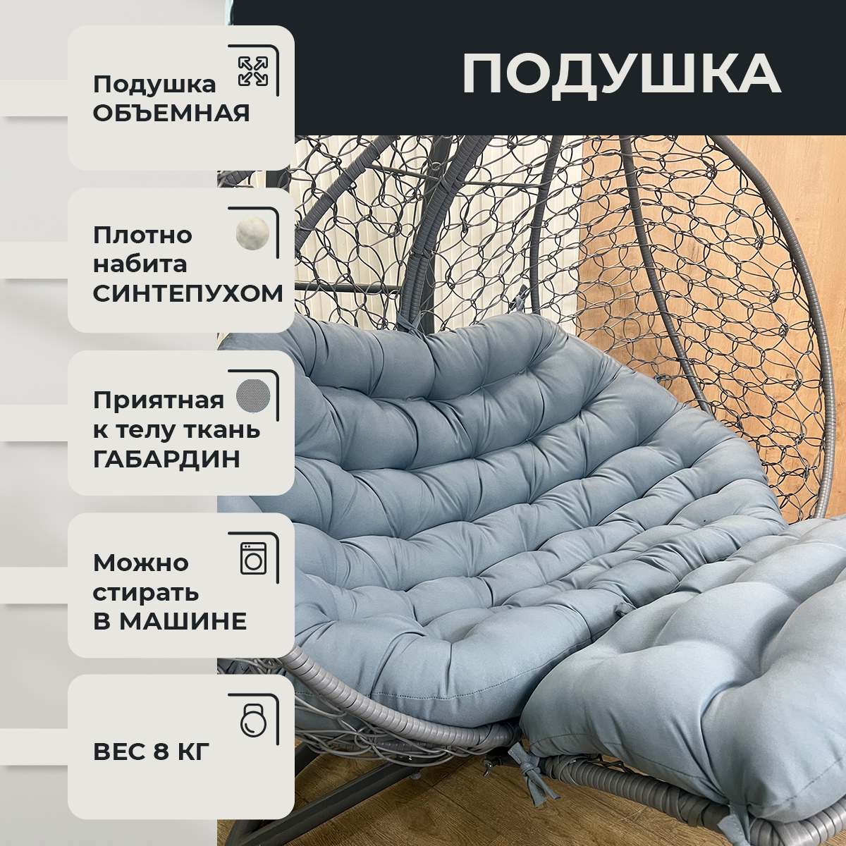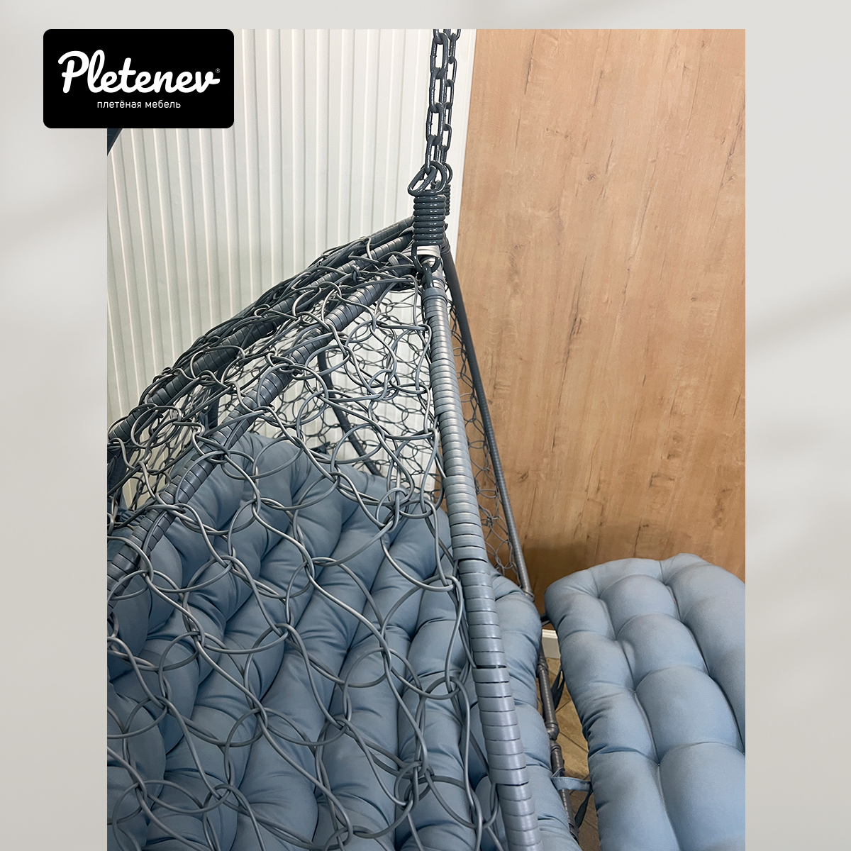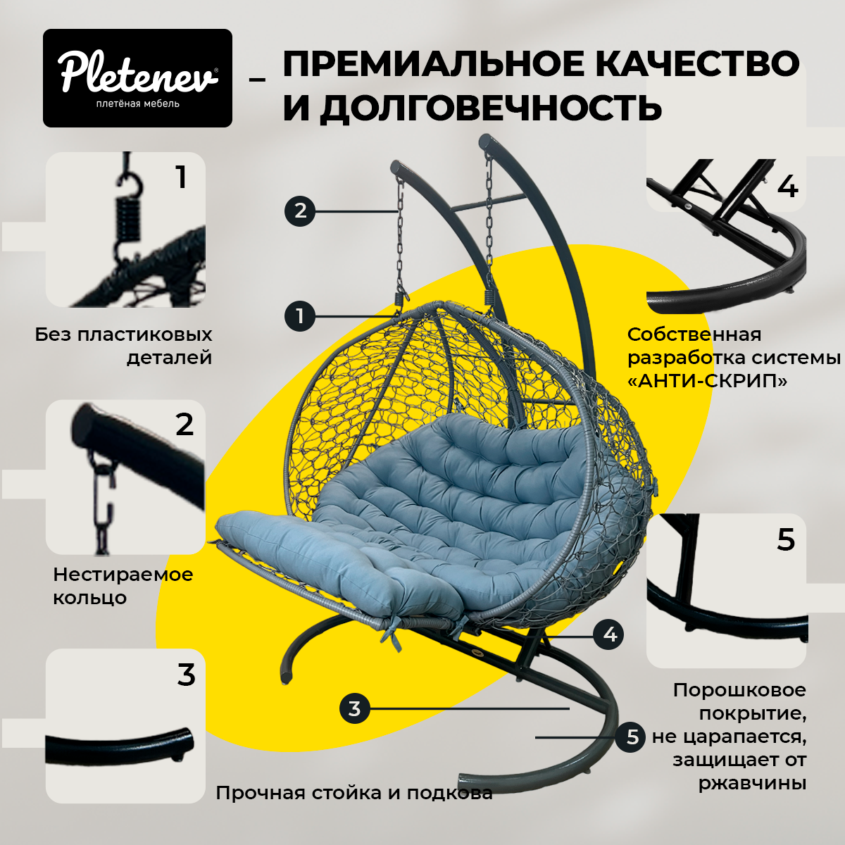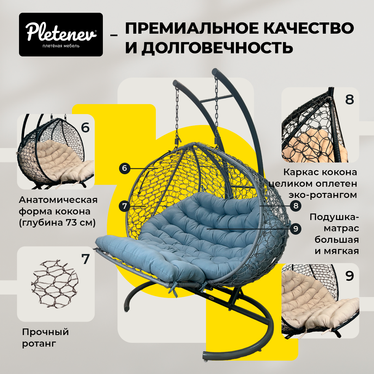 Подвесное кресло Pletenev Двухместное с водоотталкивающей уличной подушкой