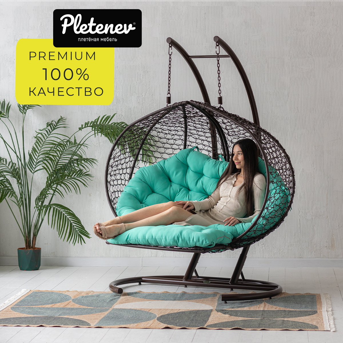 Подвесное кресло Pletenev Двухместное с водоотталкивающей уличной подушкой