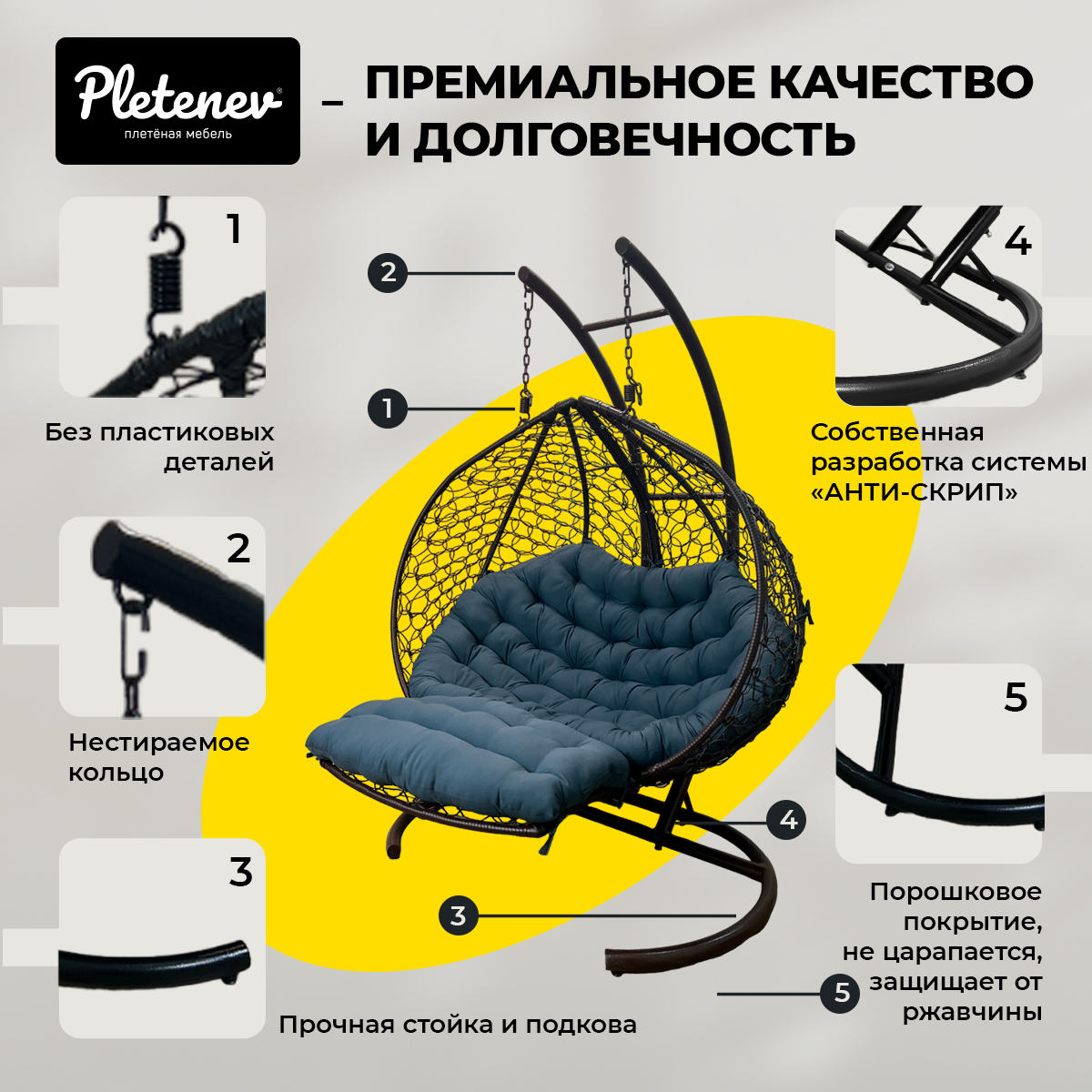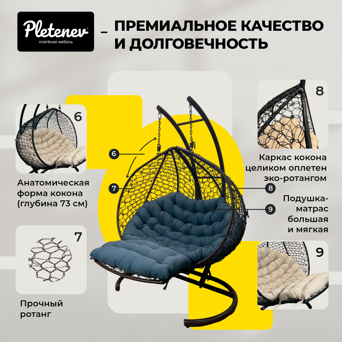 Подвесное кресло Pletenev Двухместное с водоотталкивающей уличной подушкой