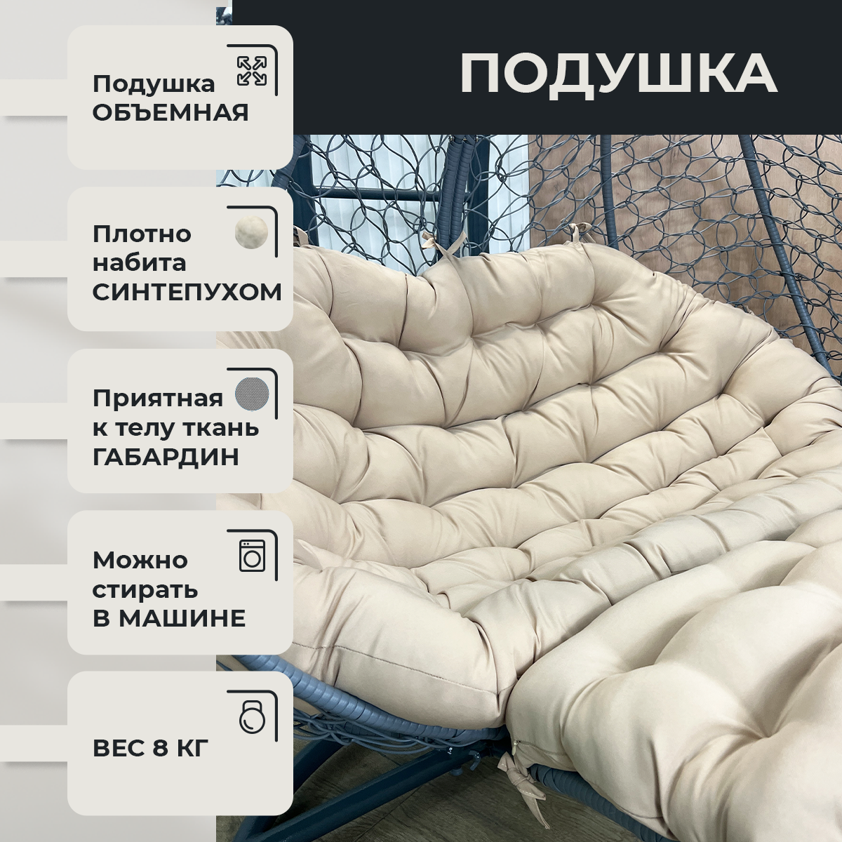 СохранитьПодвесное кресло Pletenev Двухместное серое с бежевой подушкой с реклайнером интересное: