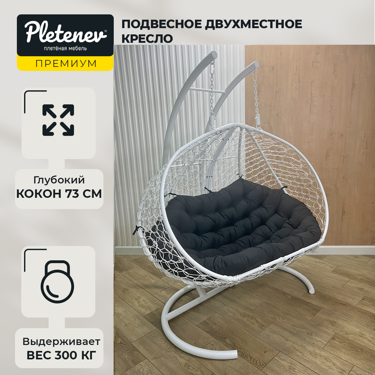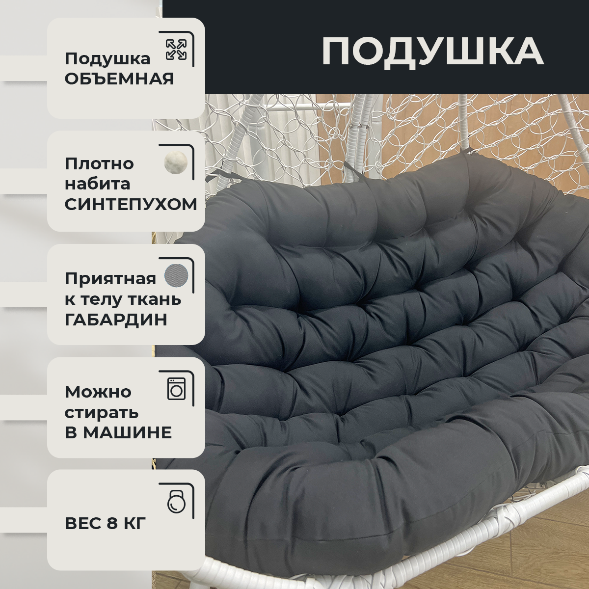 Подвесное кресло Pletenev Двухместное белое кресло с Темно-серой подушкой