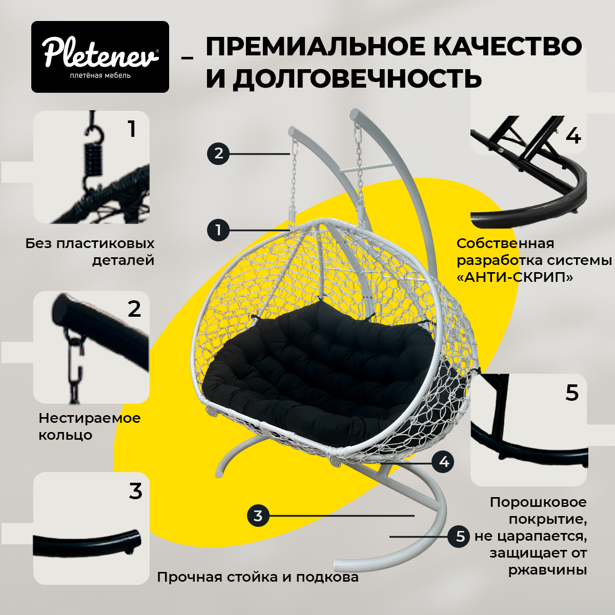 Купить Подвесное кресло Pletenev Двухместное белое кресло с Черной подушкой