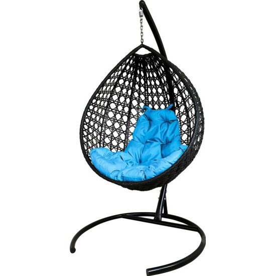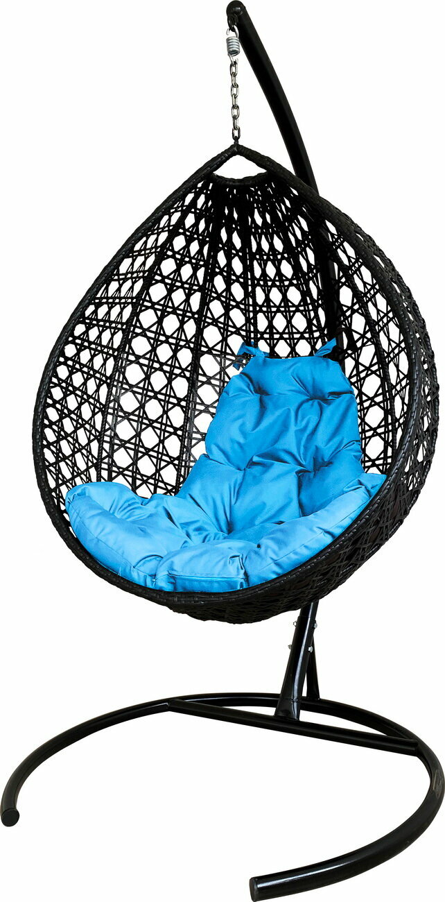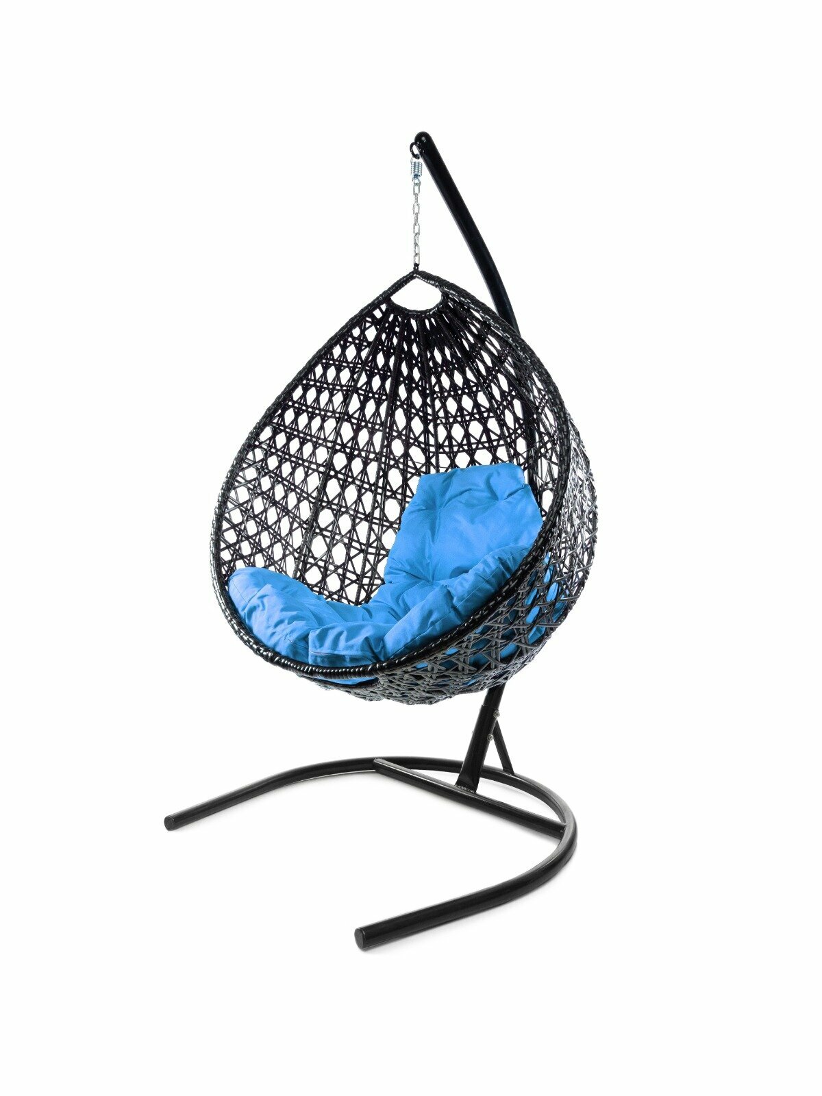 Подвесное кресло капля Люкс чёрное, голубая подушка