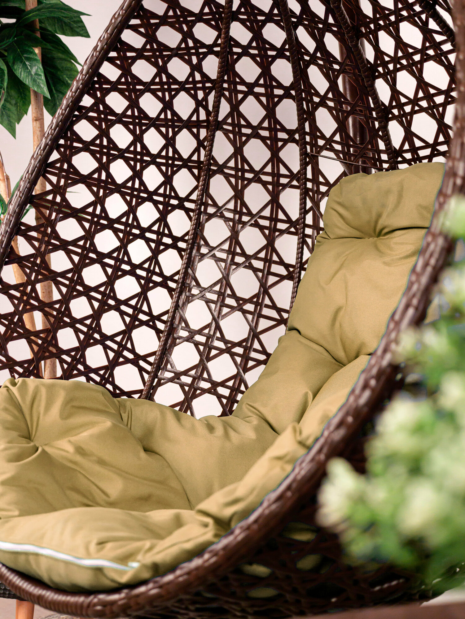 Подвесное кресло капля Люкс коричневое, зелёная подушка