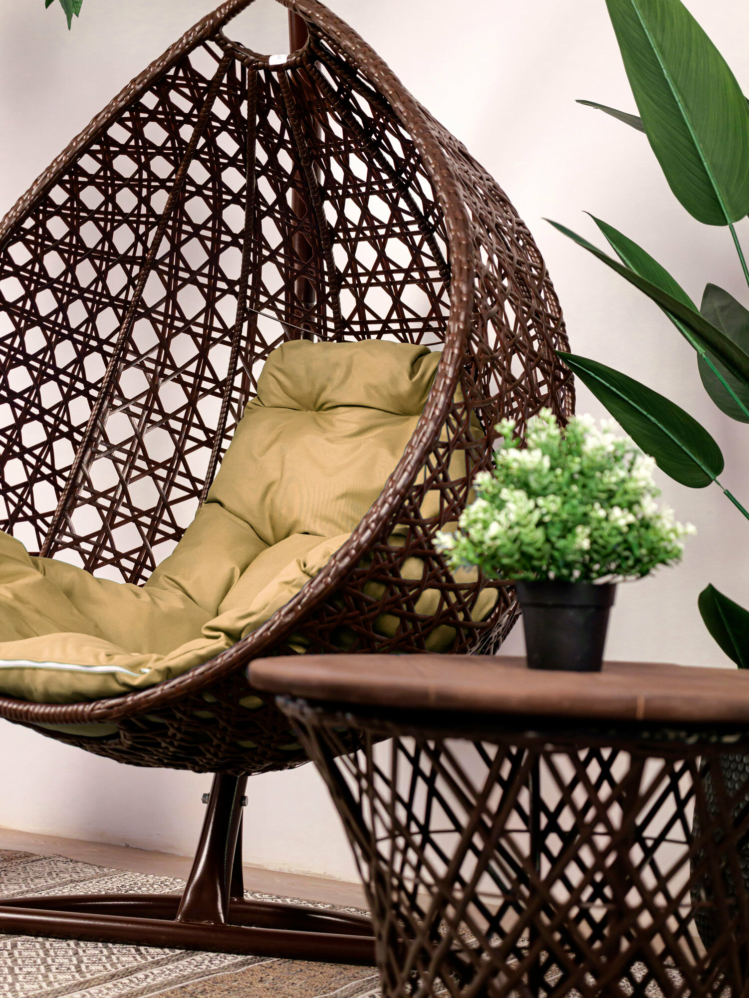 Подвесное кресло с ротангом "Для двоих Люкс" коричневое с коричневой подушкой M-GROUP