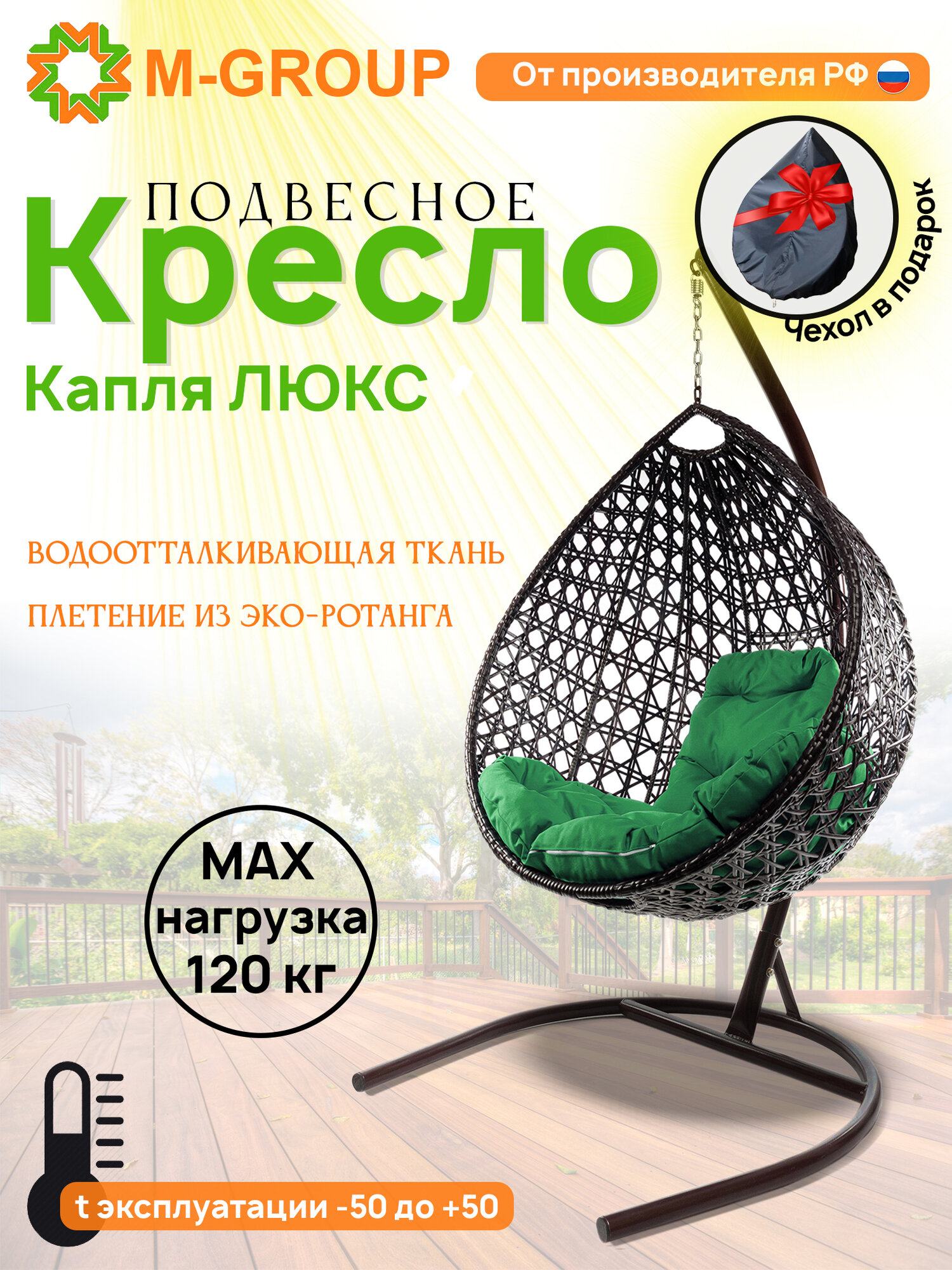 Купить Подвесное кресло M-group капля люкс с ротангом коричневое зелёная подушка
