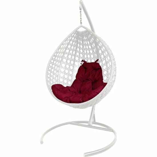Подвесное кресло капля Люкс белое, бордовая подушка