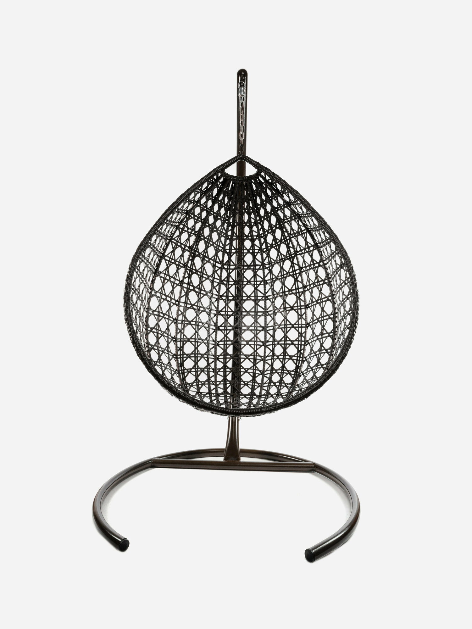 Подвесное кресло капля Люкс чёрное, коричневая подушка